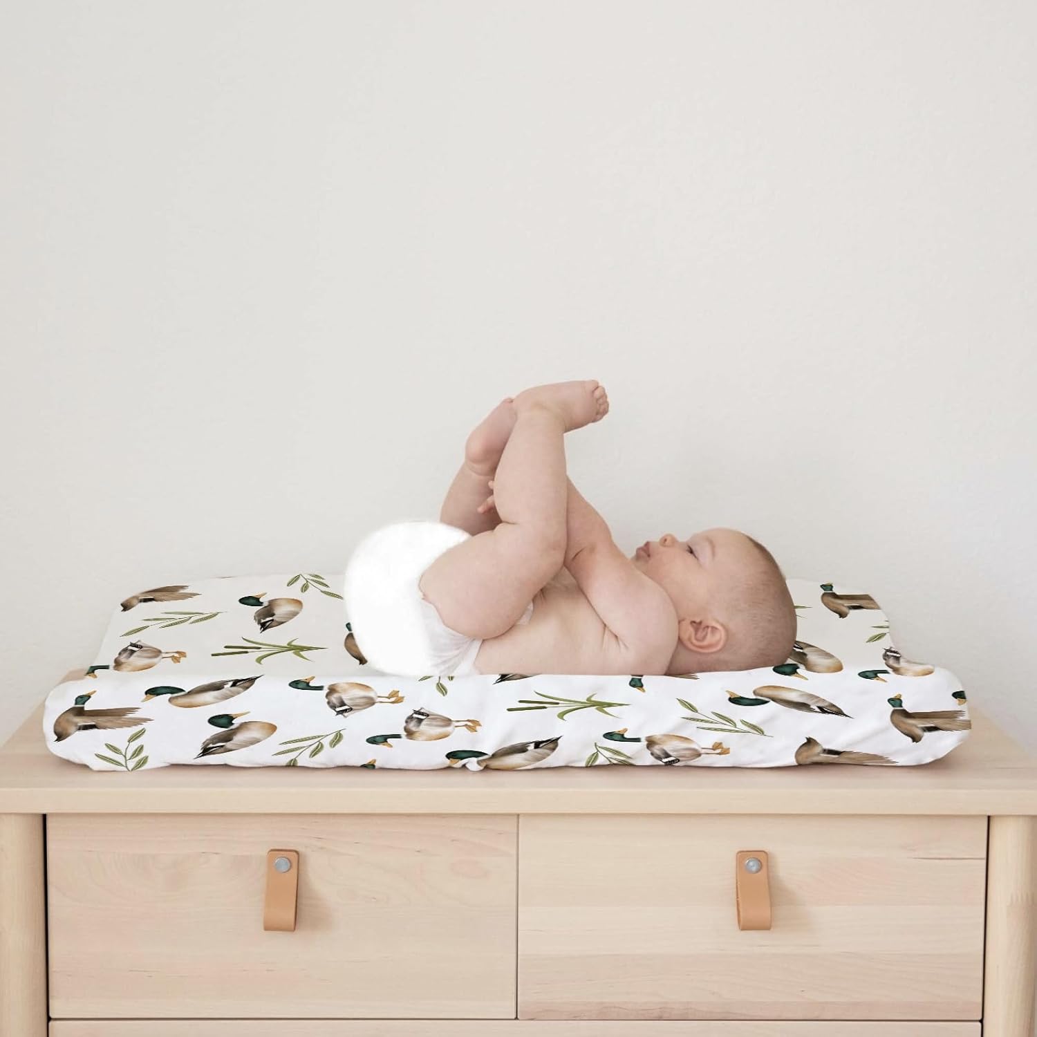 - 【Stylish Design:】Feature a Mallard Duck Duck Hunting Leaves pattern, which will be loved by baby boys and girls, perfectly decorate your baby's room. These changing pad covers mix the fun of matching, printed patterns and muted colors to create a cozy sleeping area.