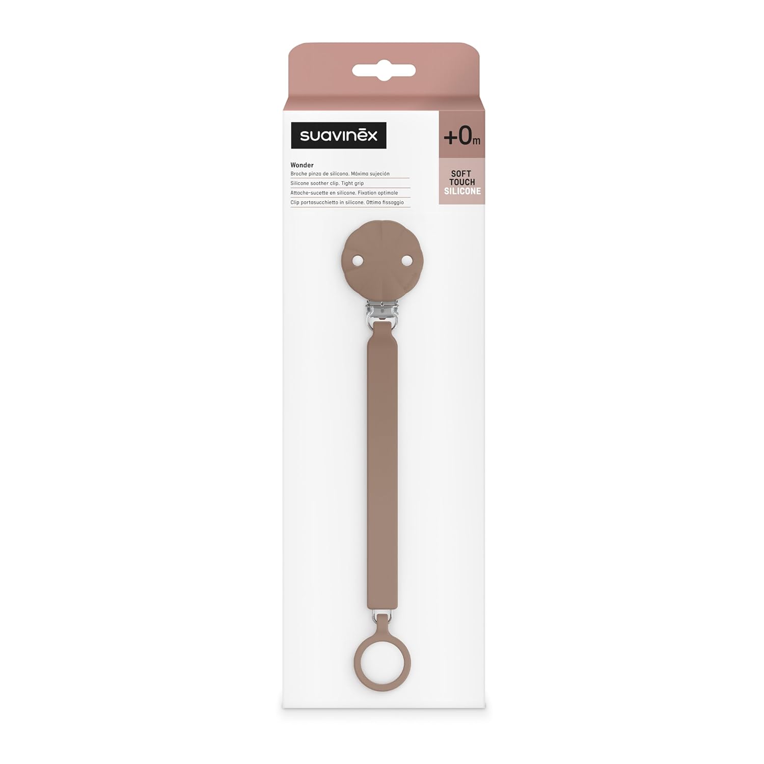 Suavinex Wonder Silicone Baby Pacifier Clip, Spain's #1 Baby Bottle and Pacifier Brand, Paci Clips for Babies, Essentials, Raw Umber