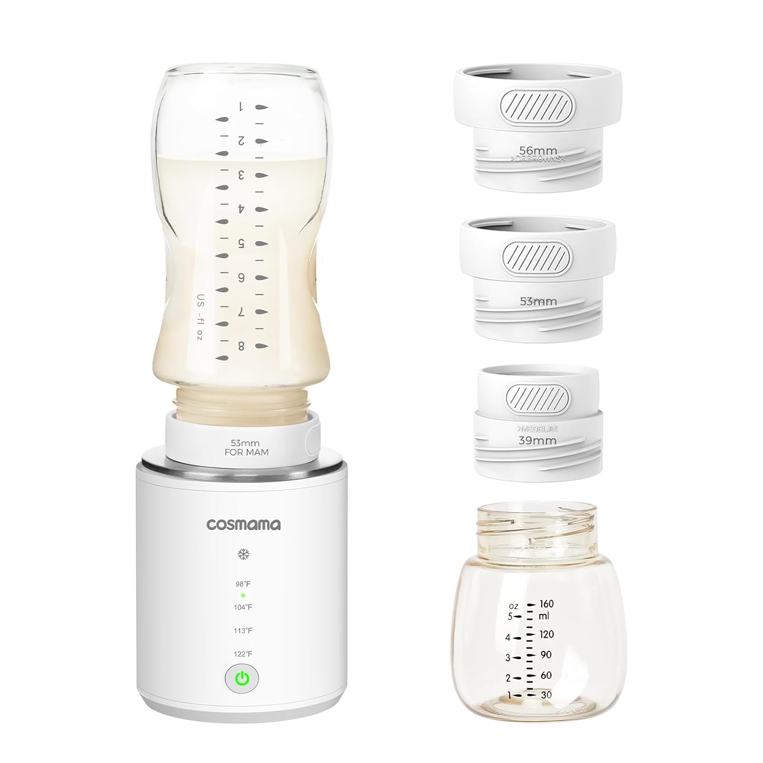 - 【Multi-compatible & comes with a feeding bottle】 The cosmama portable bottle warmer comes with a safe and reliable bottle ,Also with three upgraded adapters to ensure compatibility with most bottle brands. Our Bottle Warmer Compatible with bottle brands include: MAM/Avent--53mm // Dr. Brown's --56mm // MEDELA--39mm. The PPSU Bottle (50mm) comes can be directly connected without any adapter! Before use, please check the mouth diameter of your baby bottles and select the correct adapter. This versatile travel bottle warmer a great baby shower gift and is an essential item for any parent.