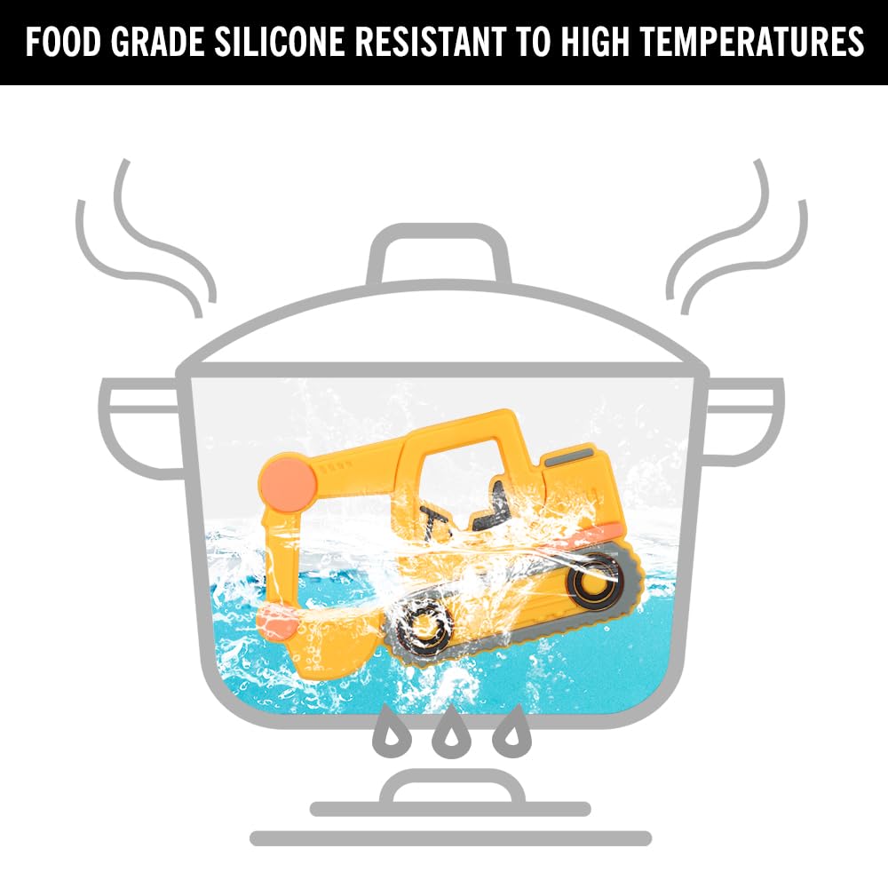 Baby Construction Vehicles Teething Toys,Food Grade Silicone Teether with One-Piece Pacifier Clip Holder,Best Shower Gift for 3 Months+ Boy and Girl,BPA Free,Freezer Safe. (Excavator)