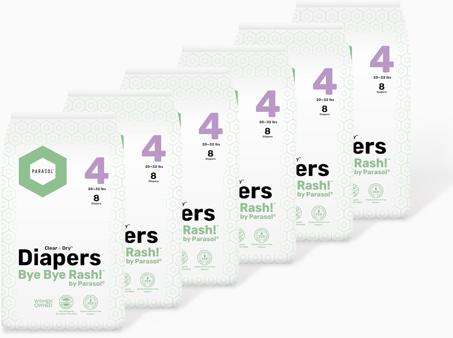 PARASOL Clear+Dry Disposable Diapers | RashShield Protection, Leakproof Design, Hypoallergenic | Size 4, (20-32 lbs) 48 Count