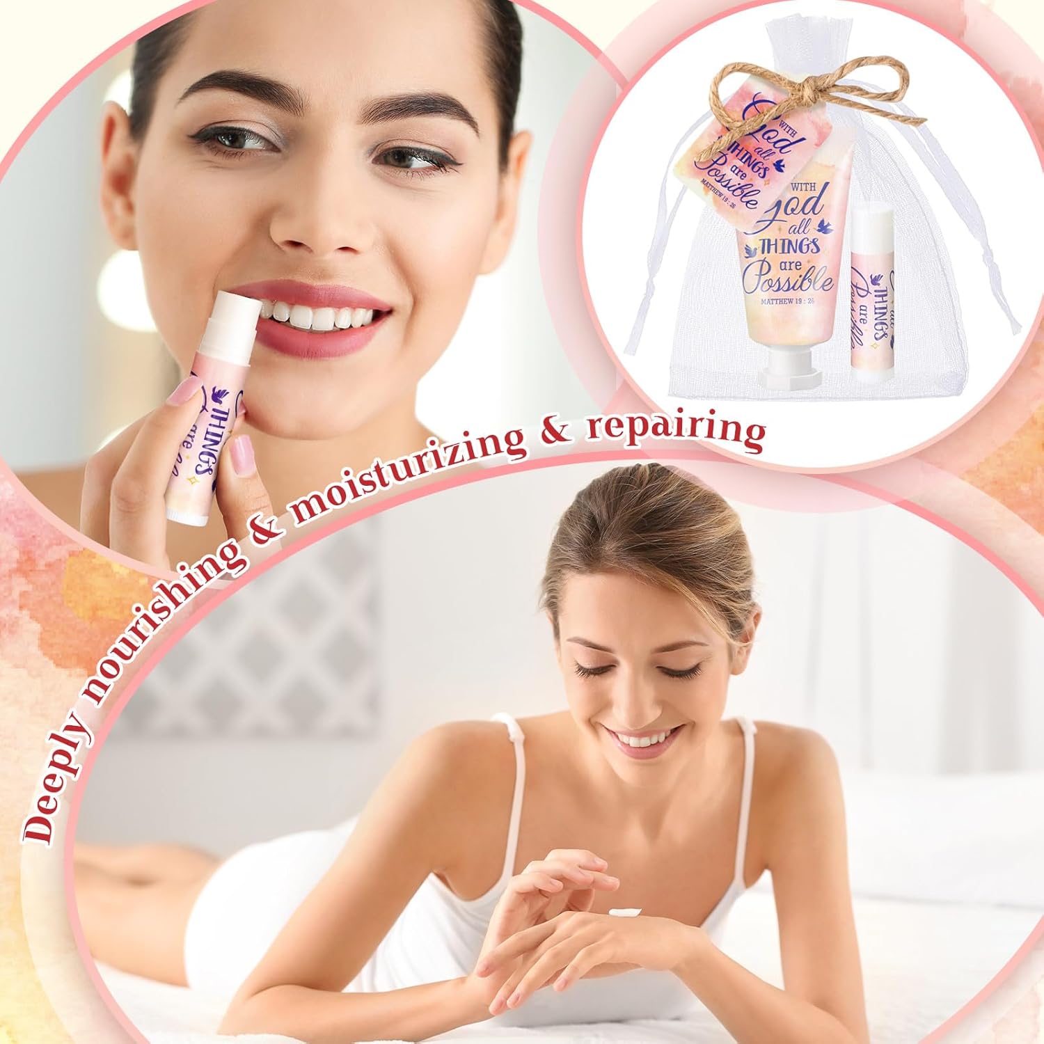 - Broad Scope of Use: bible hand cream and lip balm set are ideal for various occasions; You can use it at home with your family, or take it to school, work, vacation, outdoor gatherings, and so on; It is also an ideal gift choice for family, friends, classmates, and even during holidays, birthday celebrations, and anniversary events