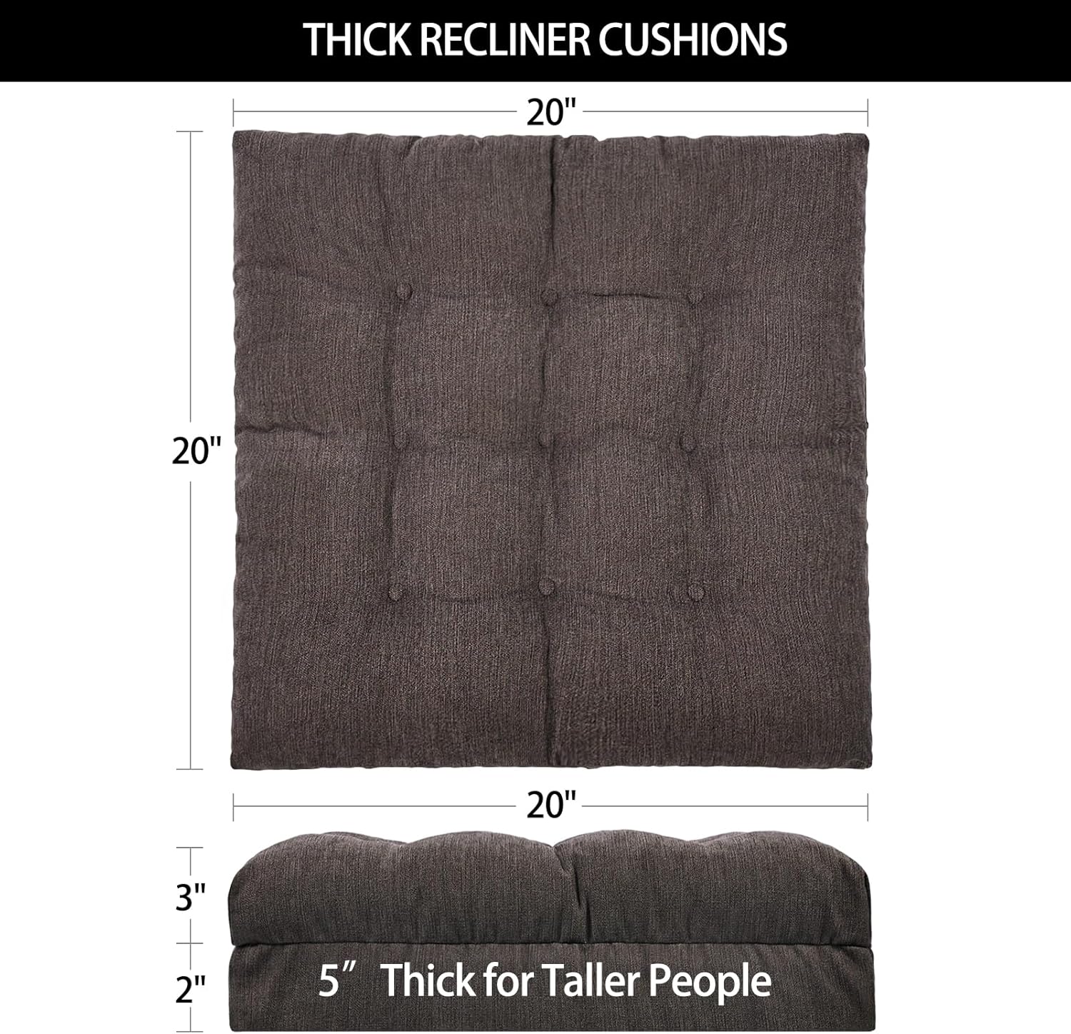 HAVARGO Recliner Cushions for Elderly, 20x20x5 Inch Thick Chair Cushion Patent Design Soft Tufted Dual Layer Booster Seat Cushions for Seniors Recliner Risers Taupe 1P