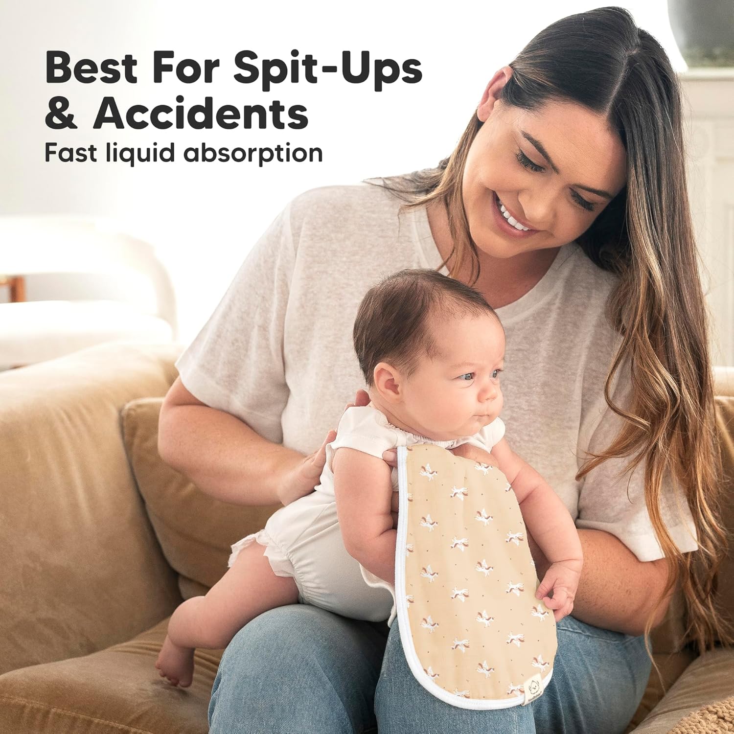- Exquisitely Soft and Gentle - Our baby burp towels for newborns are crafted with the softest organic cotton, making it suitable for all skin types. They are thick, plush, and ultra absorbent. No more worries about messes with our spit up burp rags.