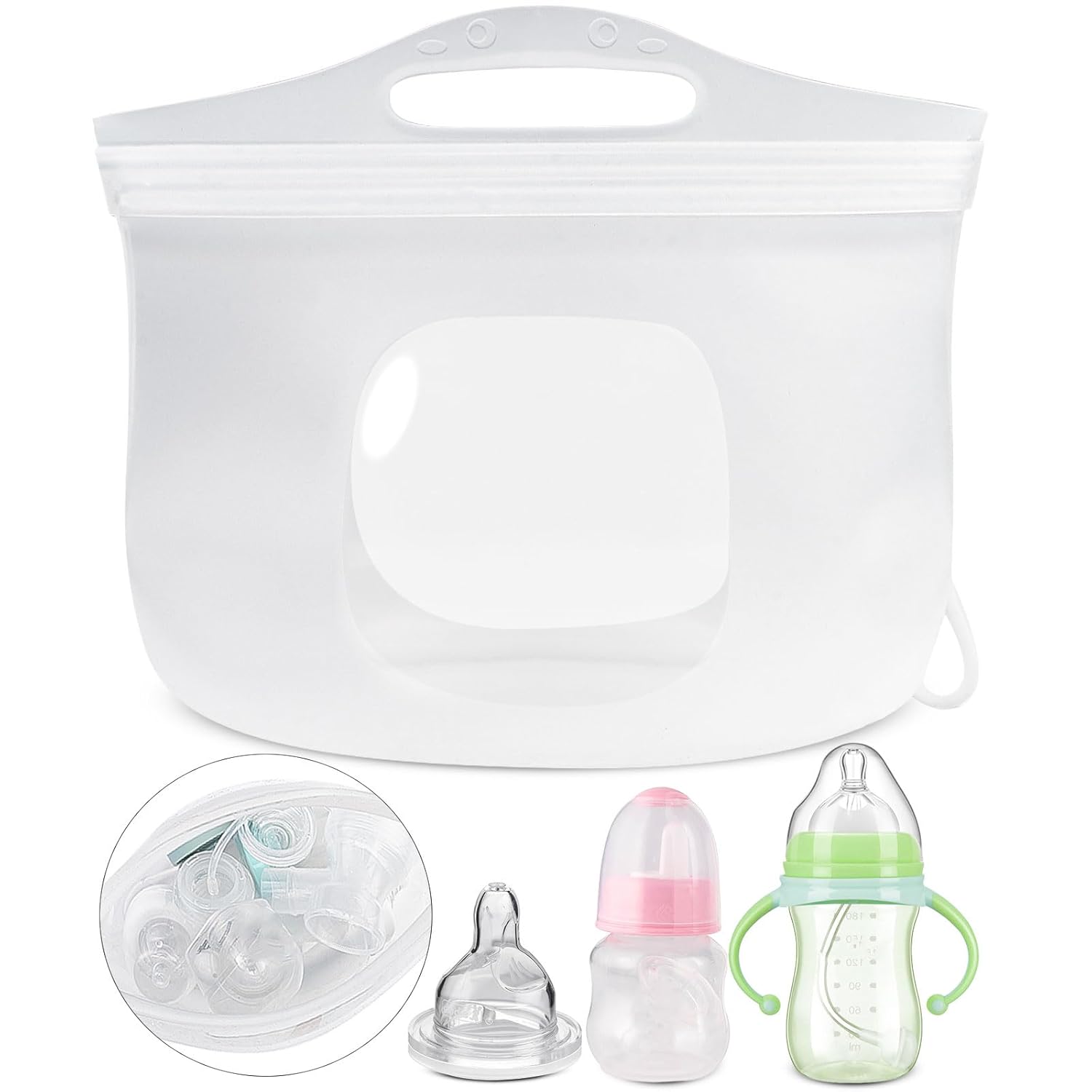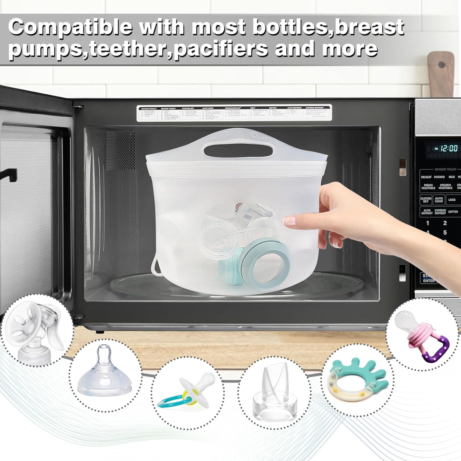 - [Premium Quality Materials] Made from food-grade silicone, these microwave bottle sterilizer bags can withstand extreme temperatures. They are safe for use in the microwave, boiling water, and steam sterilizers. Their soft construction ensures they won't easily tear or degrade, providing a reliable and safe sterilizing solution for your baby's bottles.