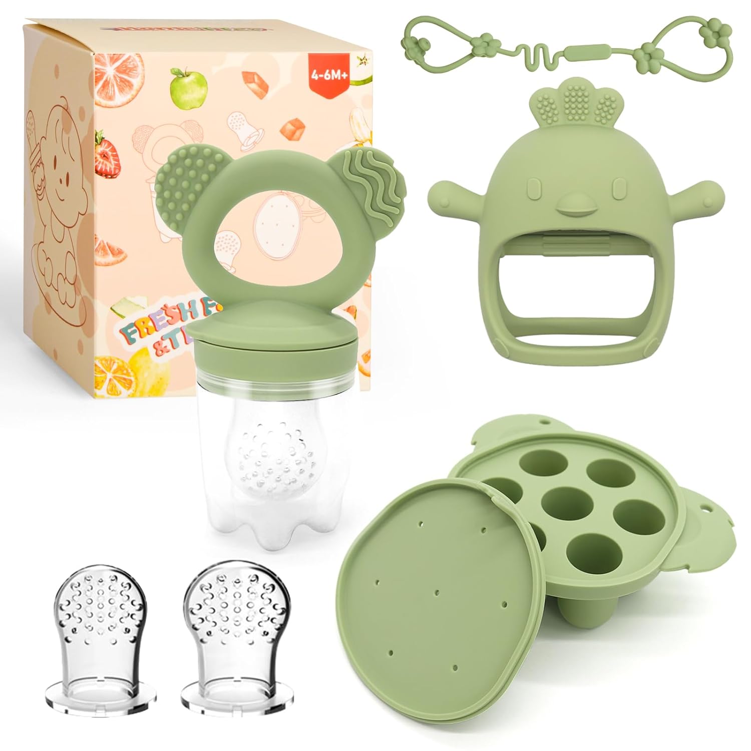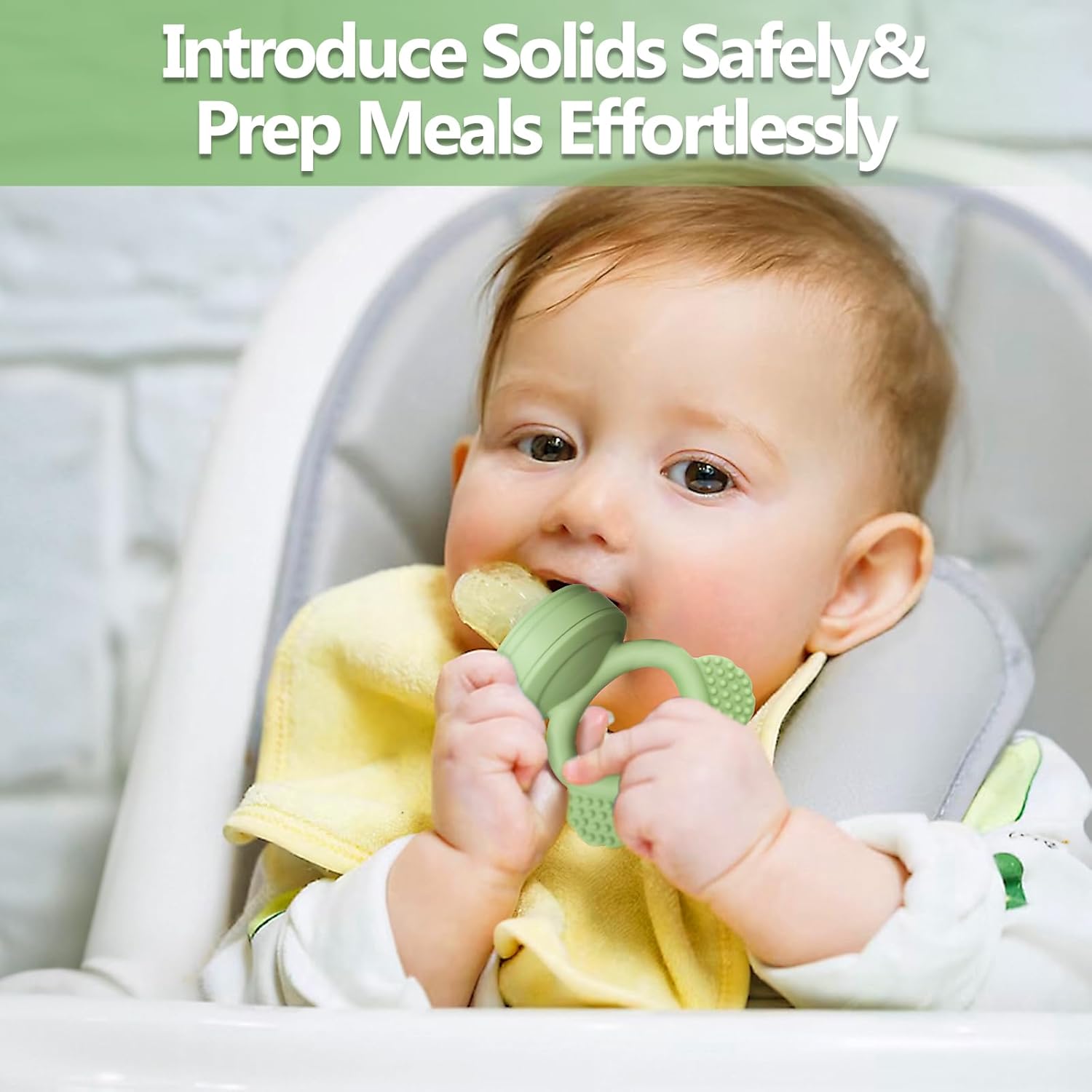 Baby Fruit/Food Feeder with Breastmilk Popsicle Molds & Teether Combo Food Grade Silicon for 6M+ Breastmilk Pops, Frozen Fruit, Baby Teething Relief(Green)