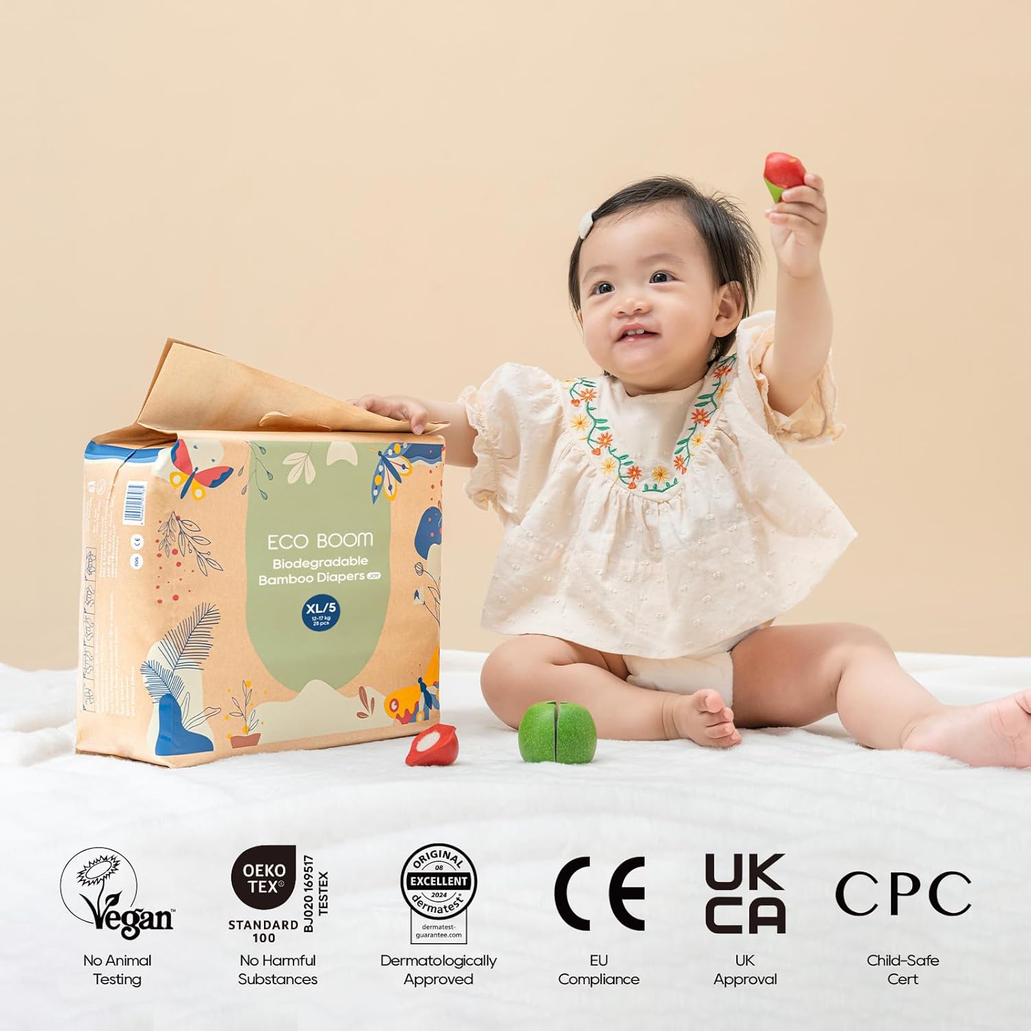 ECO BOOM Size 4 Diapers, Bamboo Viscose Diapers, Sustainable, Paper Packaging