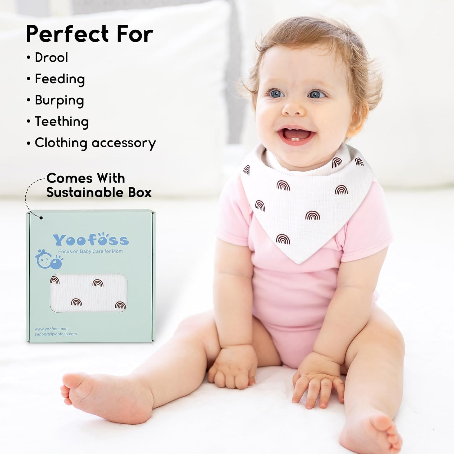 - EXCELLENT GIFT SET: The 10 pack muslin baby bibs are exclusively designed by Yoofoss to ensure that your baby never runs out of styling options.A variety of colors to perfectly match any daily outfit for baby boys & Grils. The exquisite package is suitable for baby shower gifts and registry.