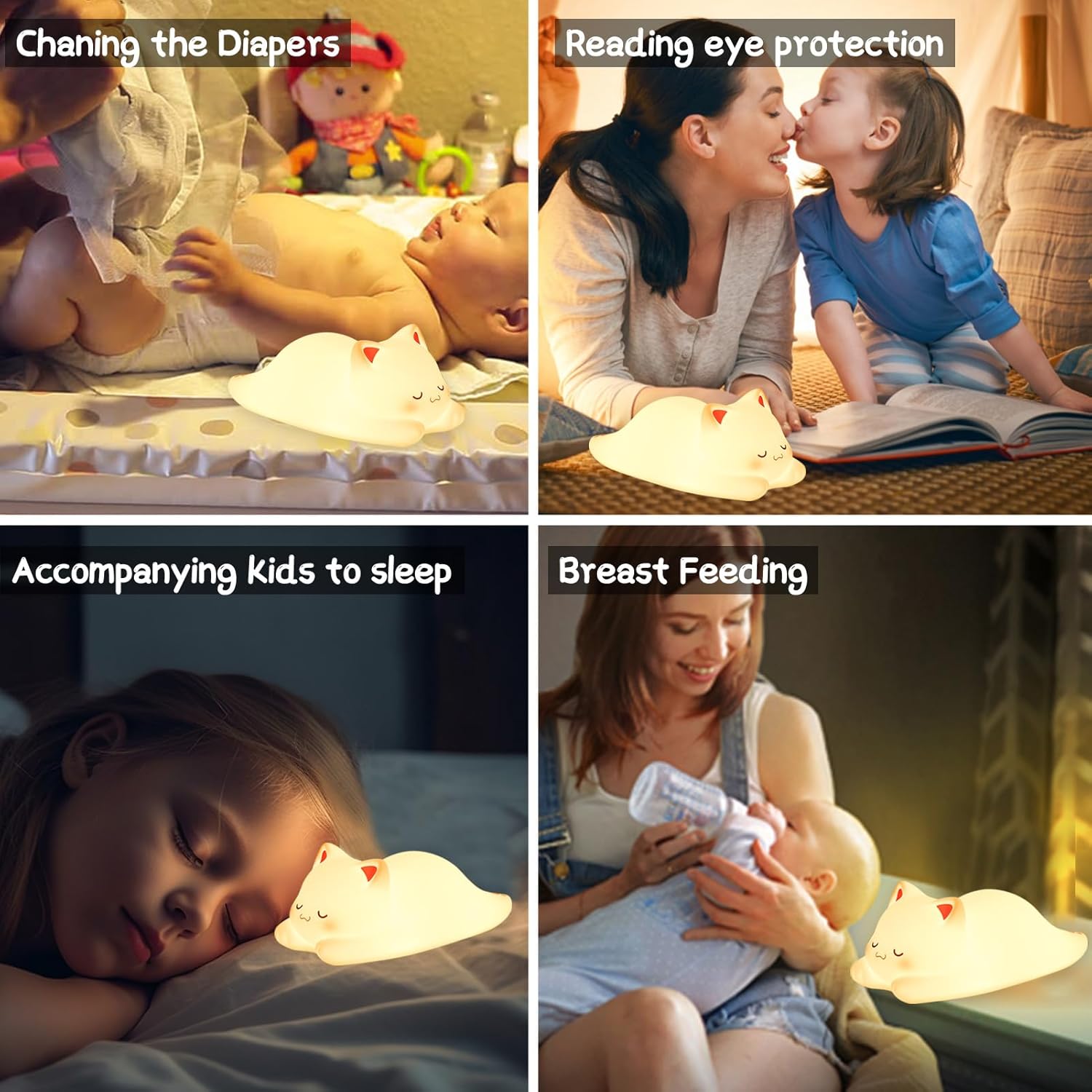 - 【Tap Control+7 Colors cat light】 Just click on the cute cat light and you can turn it on/off and enter the 7 color changing mode. The cat child's night light baby emits a soft night light for the children's room. When tapping and changing color, the kawaii cat light brings the pleasure of tapping. Cute night lights not only provide lighting, but can also be used as room decorations at night. Warm white light, soft light, warm and comfortable visual experience, long-term use will not harm the eyes. It is an ideal emotional light for bedrooms, bedside, hotels, study rooms, and more.