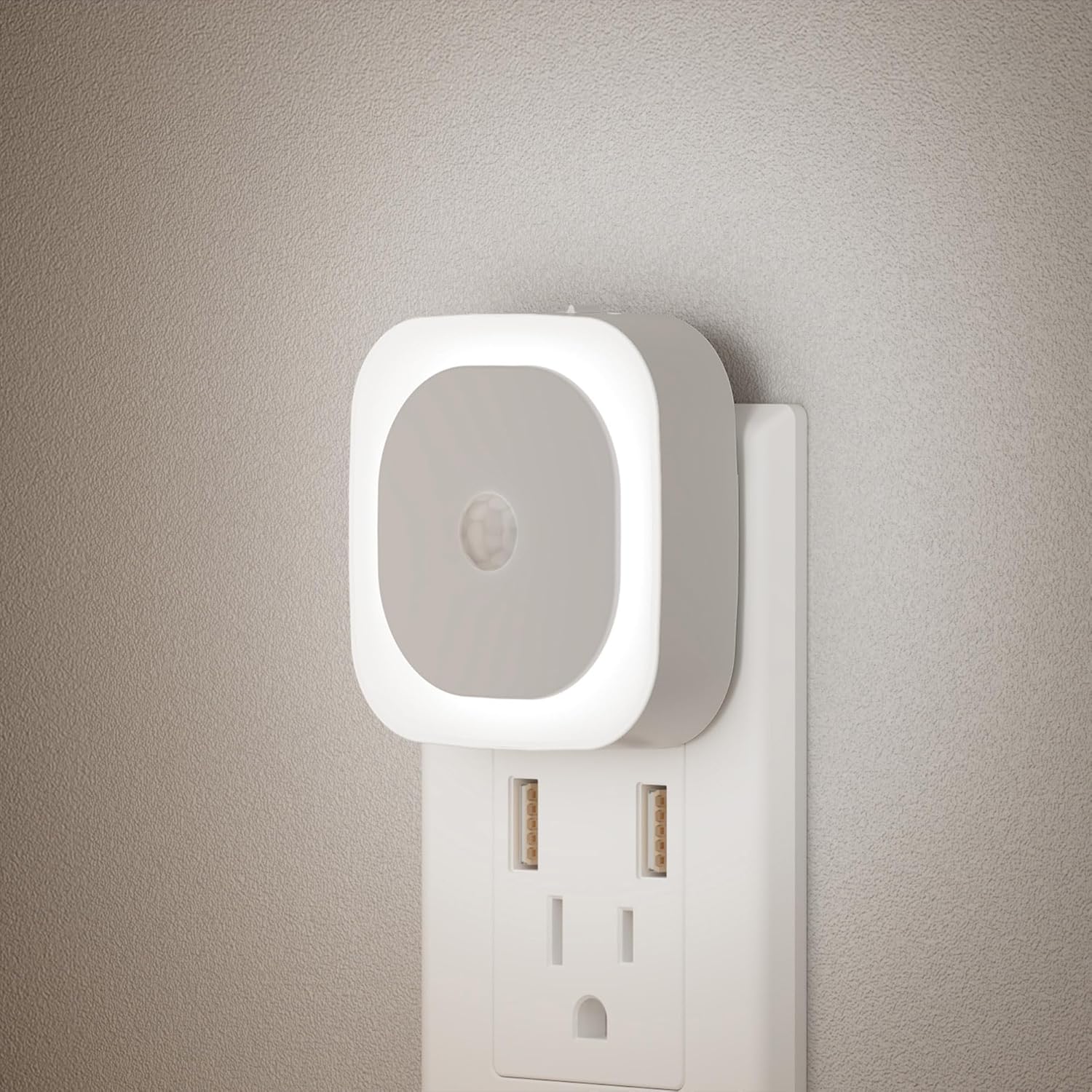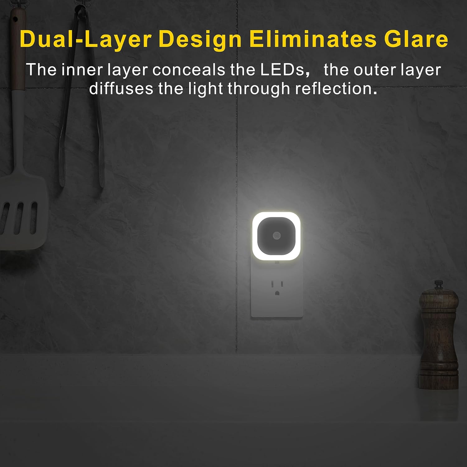 2 Pack Plug in Night Light with Motion Sensor & Dusk to Dawn Sensor, 3 Sensor Modes, Night Lights Plug into Wall, Auto ON/Off, Dimmable Nightlight for Bathroom, Stairs, Kitchen, Cool White