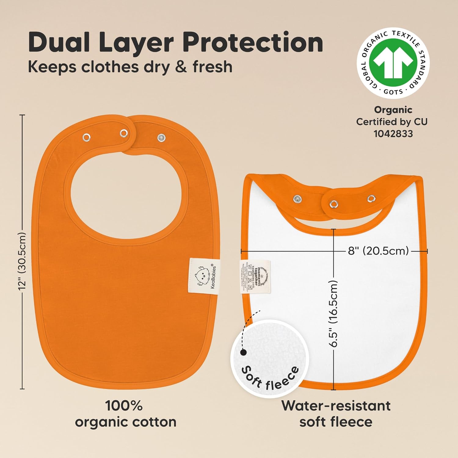 - Super Absorbent - Our organic baby boy and girl bibs are made with 100% organic cotton (GOTS-certified) and backed with water resistant fleece for added absorption. This dual layer design helps to keep your baby clean and fresh all day long. Suitable for newborns, infants, toddlers, heavy droolers and teething babies.