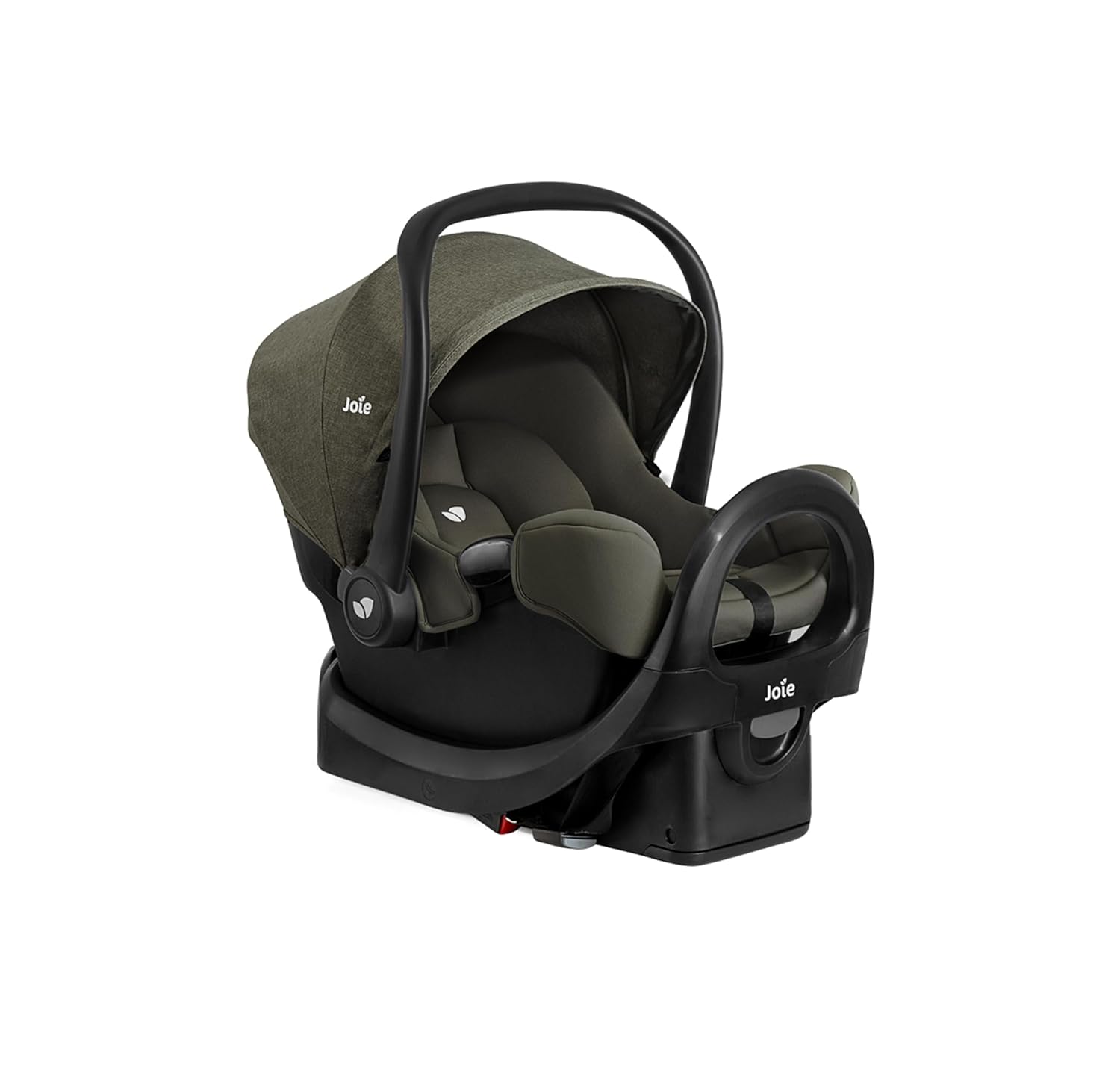 Joie Rue Lightweight Infant Car Seat & Anti-Rebound Base –Side-Impact Protection, 5-Point Harness, and UPF 50+ Canopy for Newborns and Infants (Evergreen)