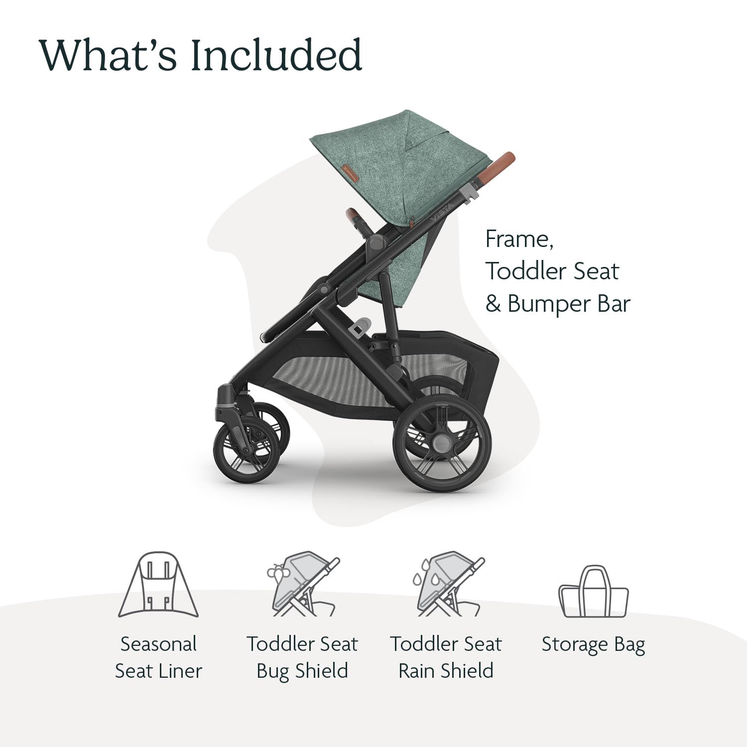 UPPAbaby Vista V3 Stroller - Full-Size Single-to-Double Stroller System - Toddler Seat, Bug Shield, Rain Shield, and Storage Bag Included - Gwen (Green Mélange/Carbon Frame/Saddle Leather)