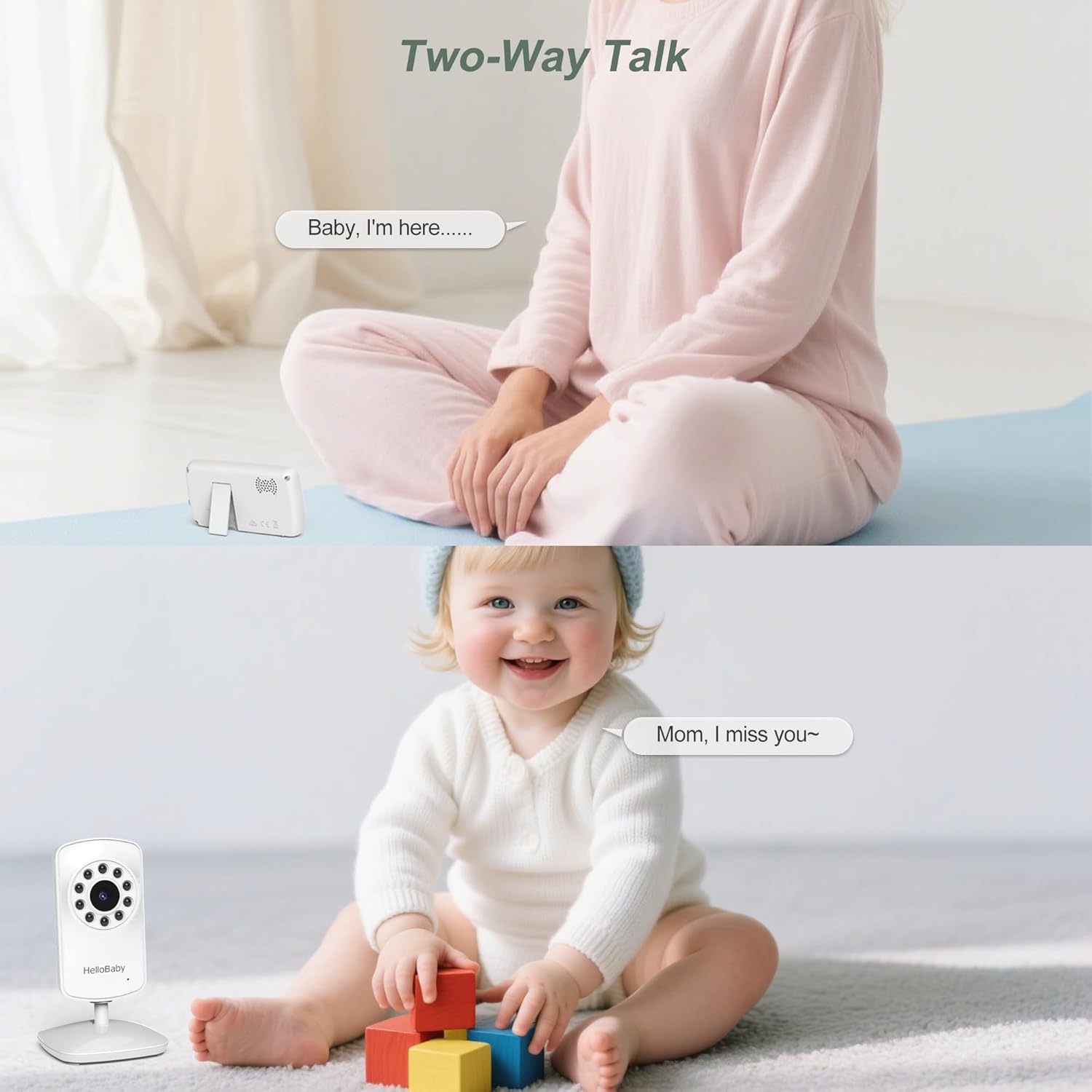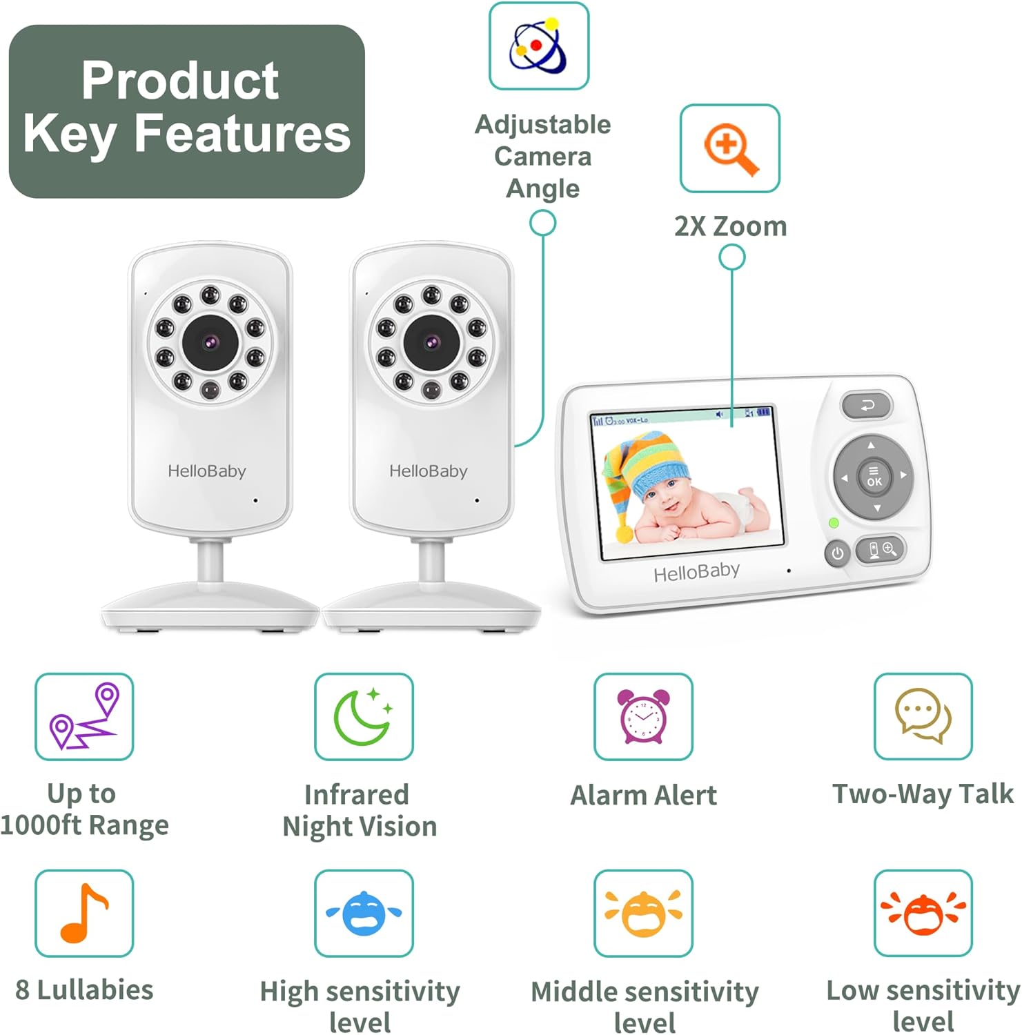 HelloBaby Monitor with 2 Cameras, 2.4'' Portable Travel Screen Baby Monitor No WiFi, 1000ft Long Range Video Baby Monitor, Night Vision, VOX Mode-Power Saving, Baby Safety Camera,for Baby/Pet/Elder