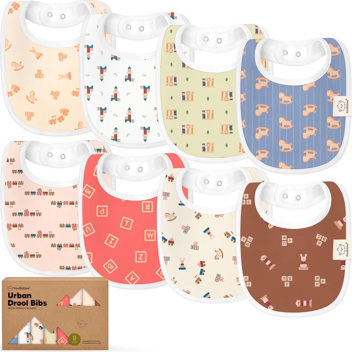 - 8-Pack Cute and Fun Baby Bibs for Boy and Girl - Our organic baby boy bibs and girl bibs are exclusively designed by KeaBabies to ensure that your baby never runs out of styling options. Our baby bibs are unisex and easy to match, making them a fuss-free teething baby essential.