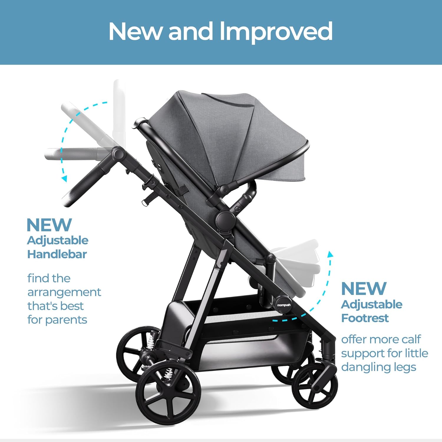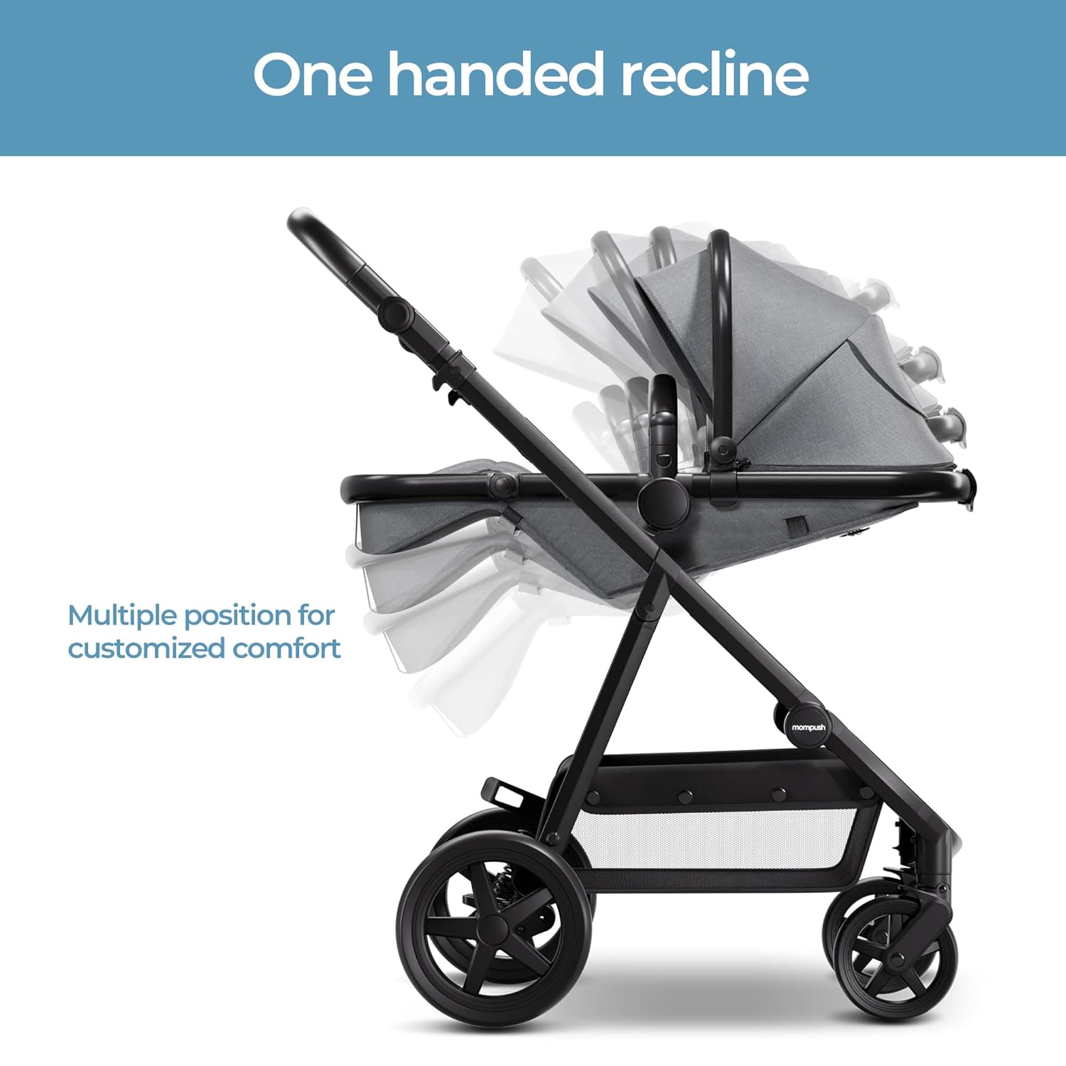 Mompush Baby Stroller, Convertible 2-in-1, Infant Car Seat Compatible, Includes Adapter - Sturdy Full-Size Infant Stroller for Family Adventures