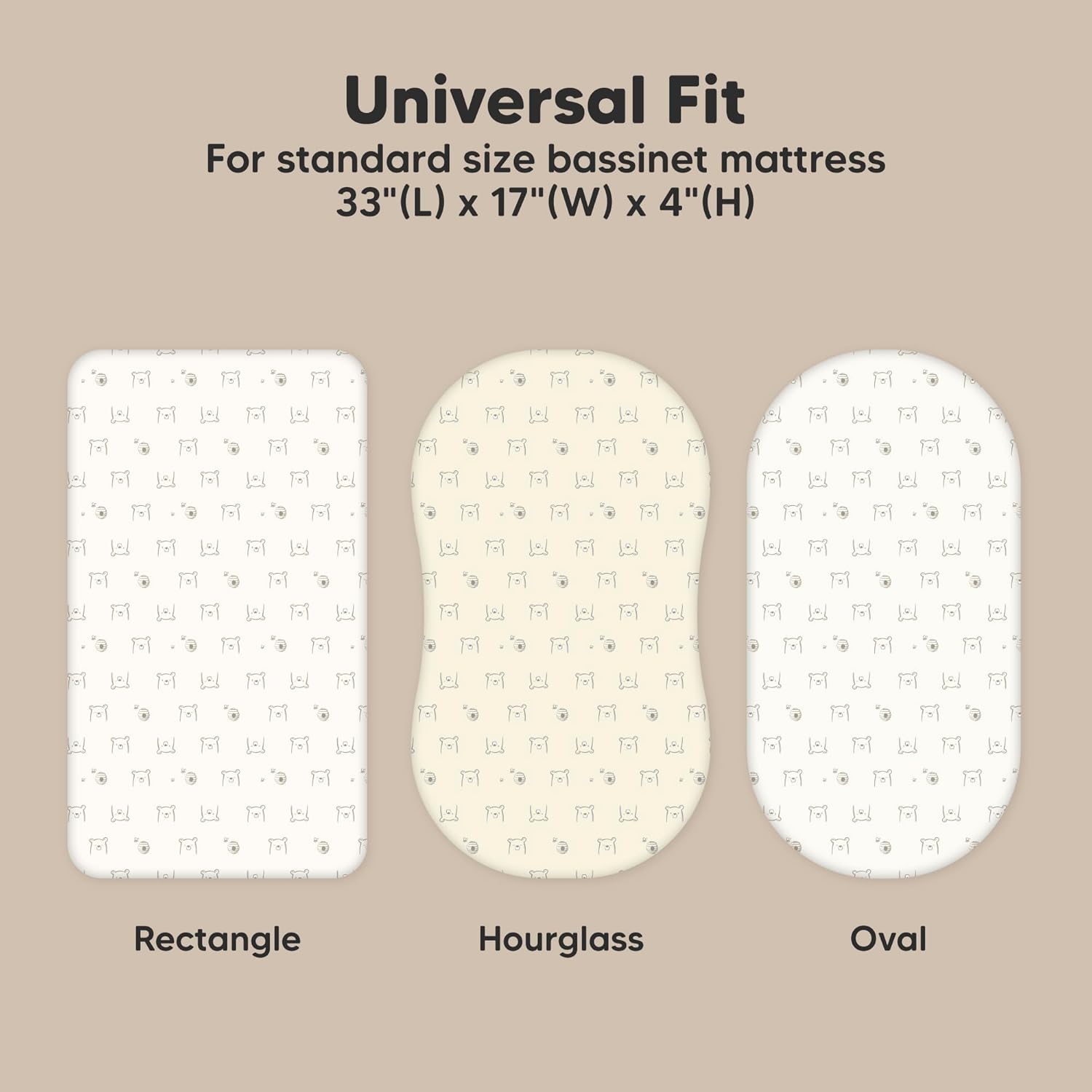 - 2-Pack Bassinet Fitted Sheets - KeaBabies Soothe Bassinet Mattress Sheets, sized at 33" x 17" with a depth of up to 4", provide a universal fit for all bassinet mattress pad types. They can be used as hourglass, oval, rectangle bassinet sheets.