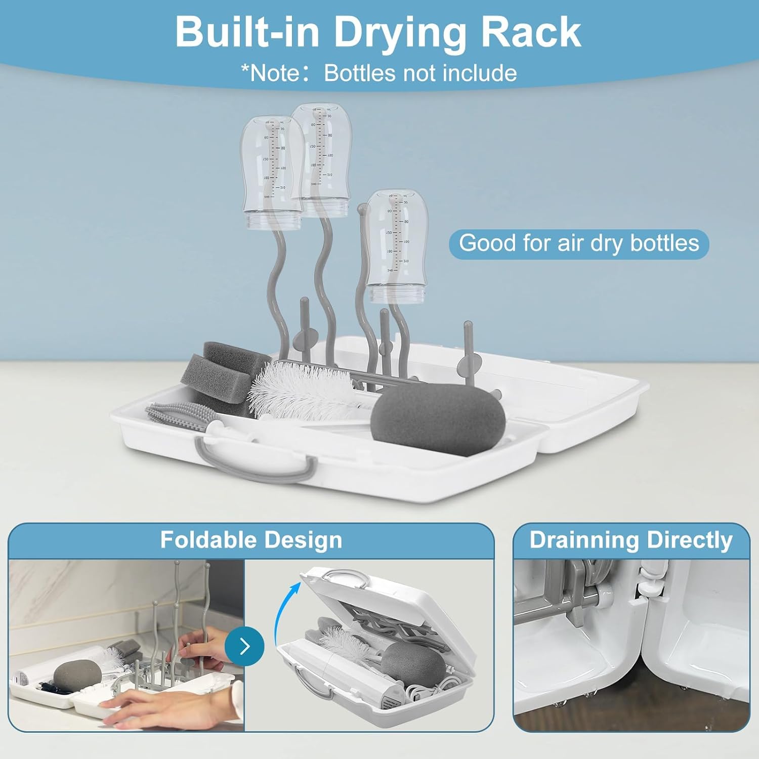- Storage Box and Drying Rack Design: This travel bottle brush set has a storage box built in foldable drying rack, which can be used for bottle drying. Each brush in the storage box to avoid clutter, it's perfect to storage and carry during travel.