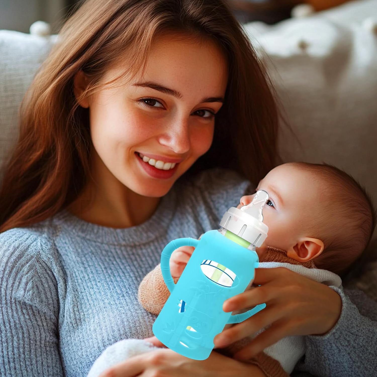 - Unique Designed for Baby Bottles - The silicone sleeves for Dr. Brown's Baby Bottles can against drop down,bumps and scratches. These are a must essential product for using glass baby bottles. They provide a more sturdy protection for glass baby bottle from breaking if dropped, which also unique handle design shape make it easier to grip and hold
