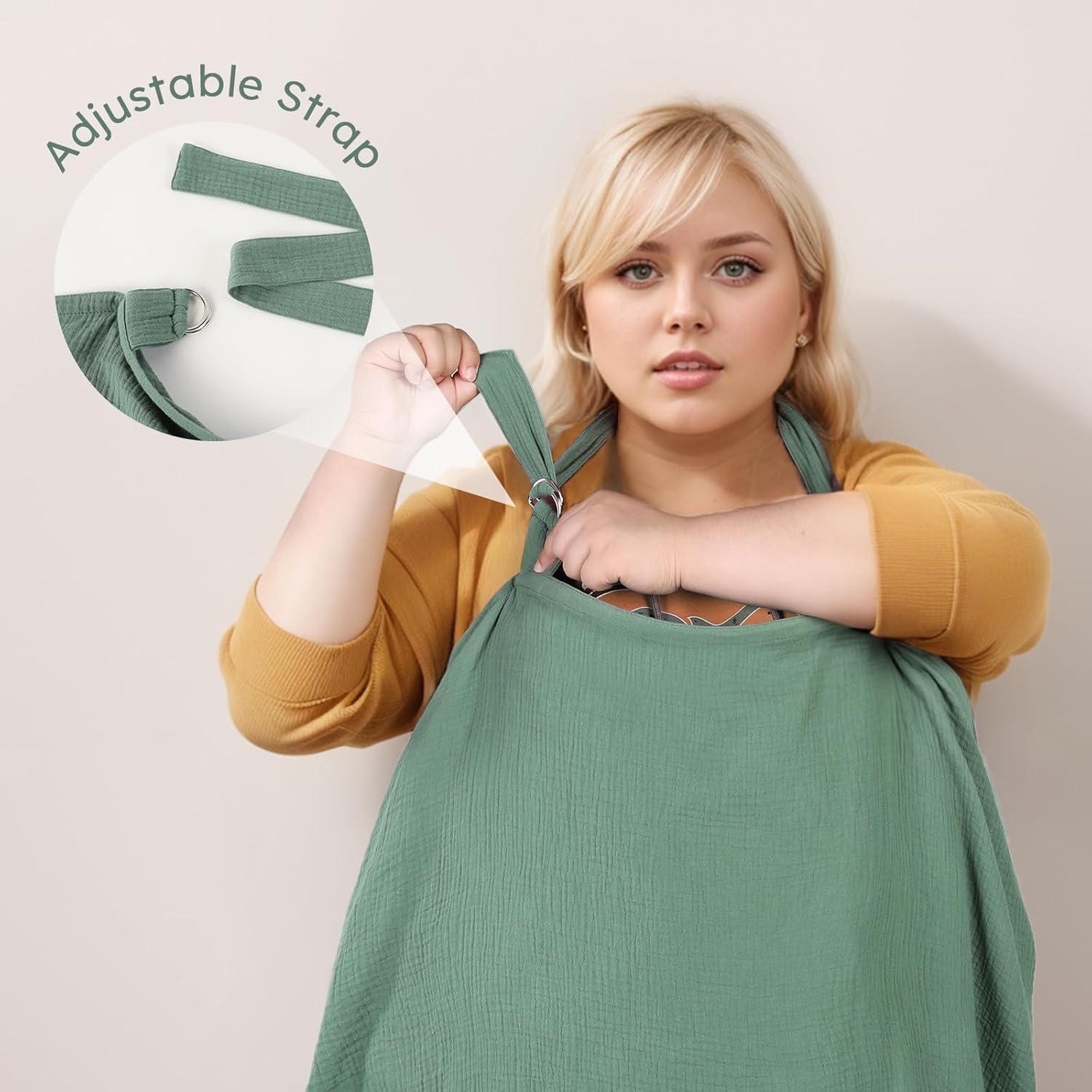- Detachable and Adjustable Back Straps: Featuring detachable and adjustable back straps, this muslin nursing cover stays in place during breastfeeding sessions, even in windy conditions. The snaps on both sides allow for easy attachment and removal of the strap as needed.