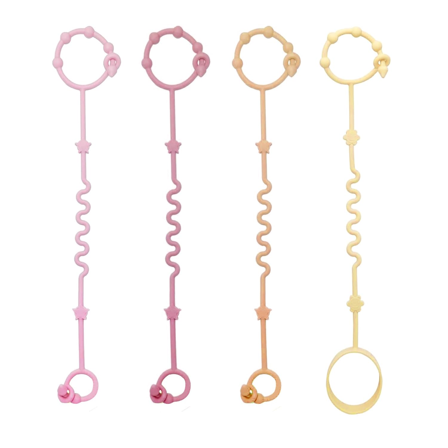 - New Upgrade Design: RTMOK baby teether toy belt is designed with bending and stretching, better ductility, stretchable, washable and adjustable. For different needs, our four-piece toy belt, respectively, there are 1fixed bottle toy belt, 2 fixed any toy toy belt, you can choose at will.