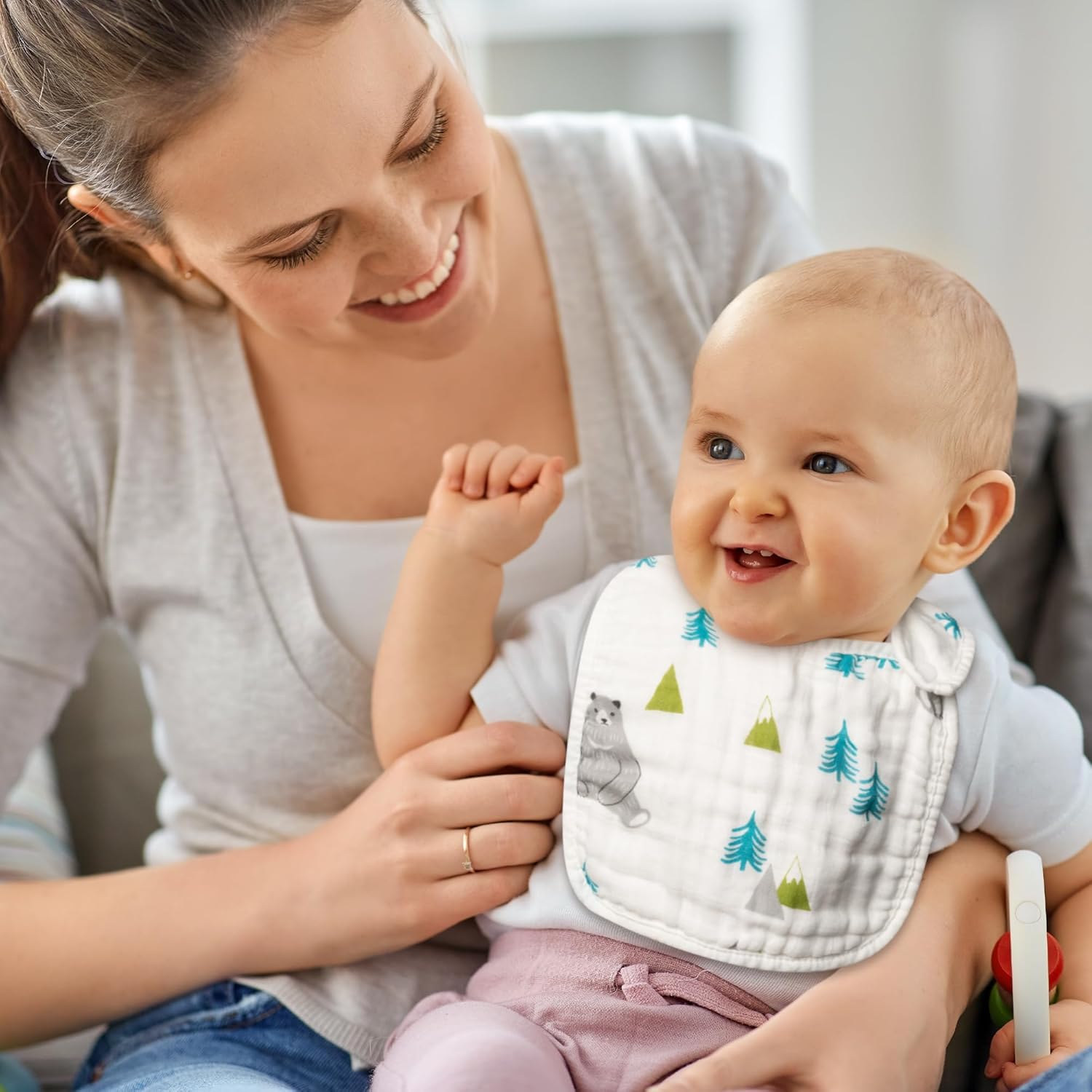 - Absorbent: Our baby drool bibs are made of 6 layers of soft textured cotton fabric. It absorbs liquids and keeps baby's skin and clothing dry.