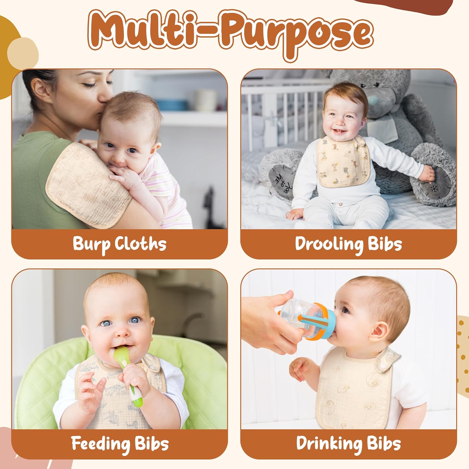 - Material: Our baby bibs are made of pure cotton sheer, lightweight and breathable. Babies wearing soft material bibs will feel comfortable, and sensitive skin will also be well cared for.