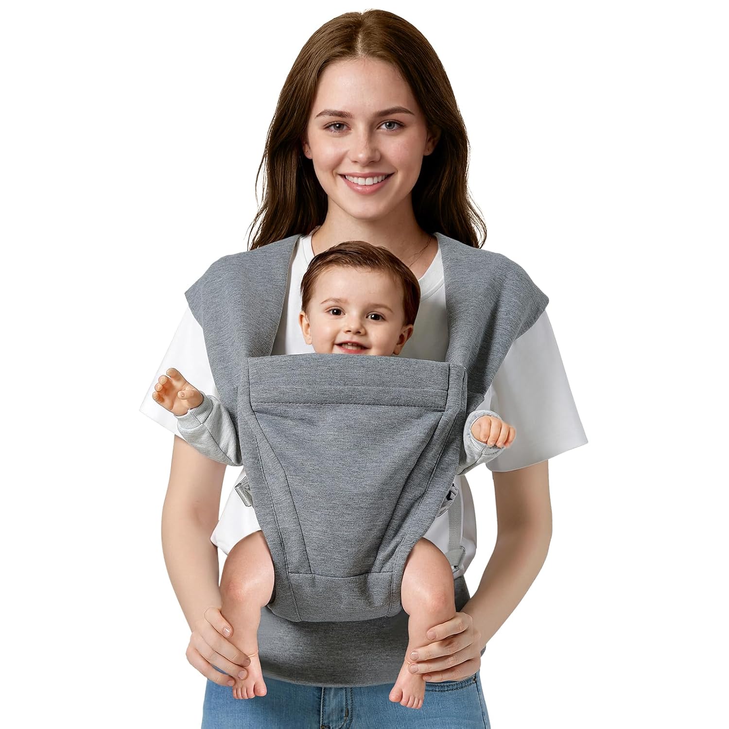 Baby Carrier Newborn to Toddler Baby Wraps Carriers(7-30lbs), Newborn Carrier with Head Support, Infant Holder Carrier with Enhanced Lumbar Support, Light Grey