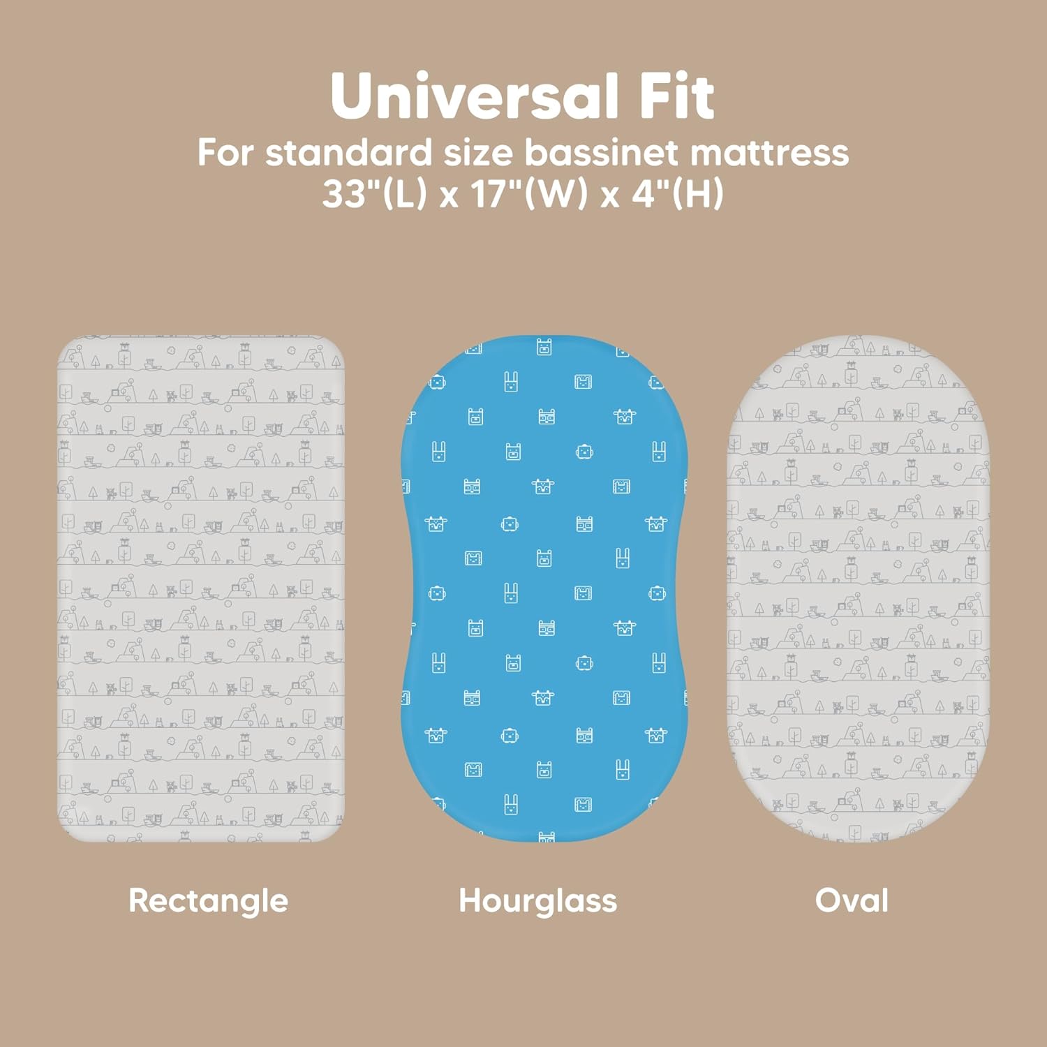 - 2-Pack Bassinet Fitted Sheets - KeaBabies Soothe Bassinet Mattress Sheets, sized at 33" x 17" with a depth of up to 4", provide a universal fit for all bassinet mattress pad types. They can be used as hourglass, oval, rectangle bassinet sheets.