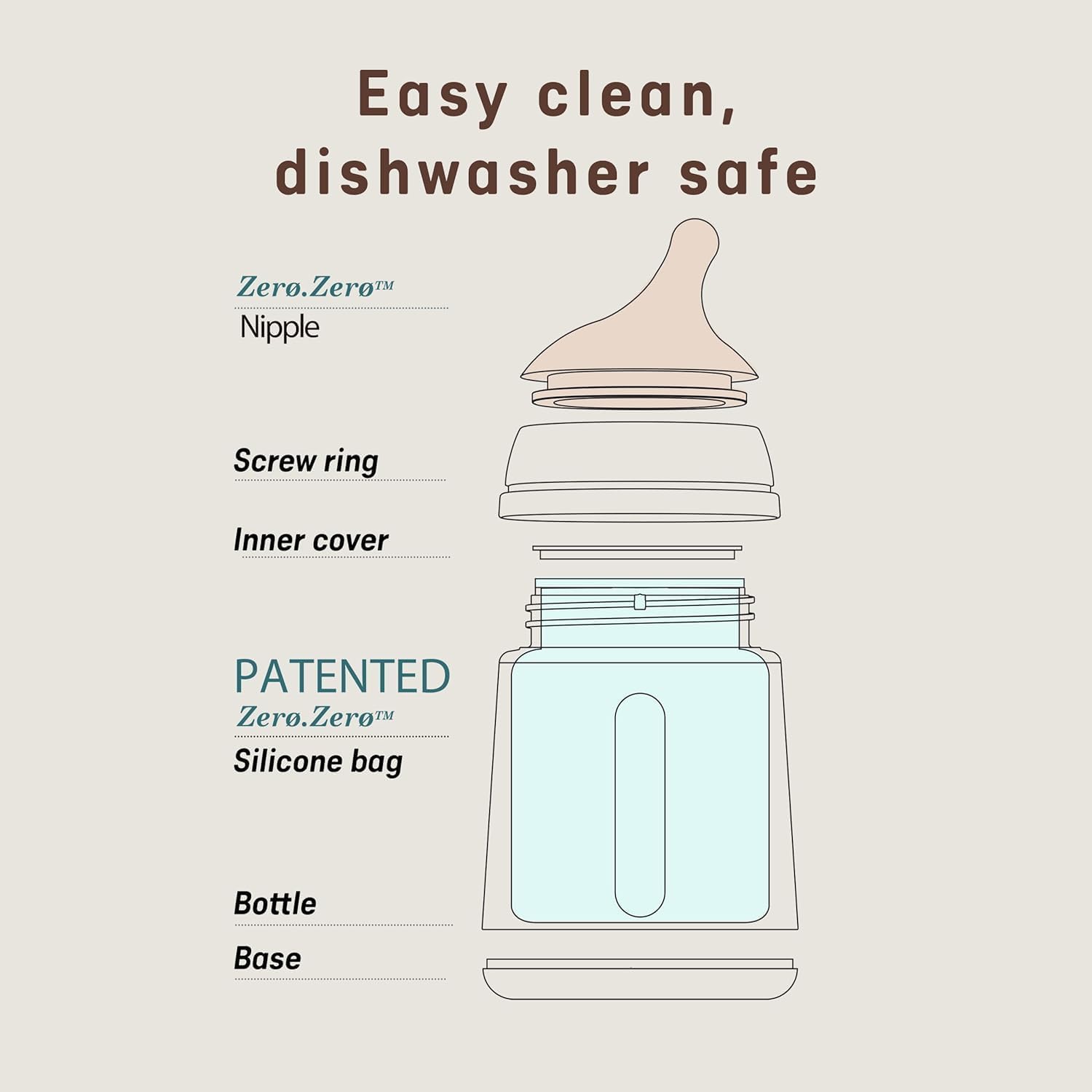 - Patented medical grade anti-colic bag within baby bottle contracts as baby sucks, preventing baby from swallowing air. Variety of nipples available according to the baby's age and desired flow.