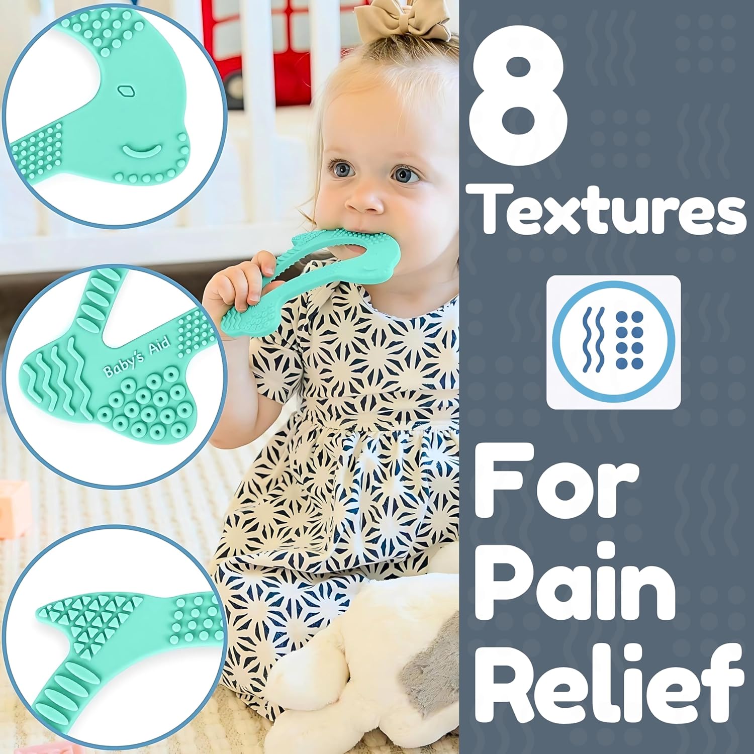 - Dolphin baby teether for pain relief: Designed with 8X teething relief textures, this dolphin-shaped teething toy gently massages sore gums, providing the ideal baby chew toy for infants and toddlers. It’s perfect for babies 3+ months, offering lasting comfort and effectively soothing discomfort.