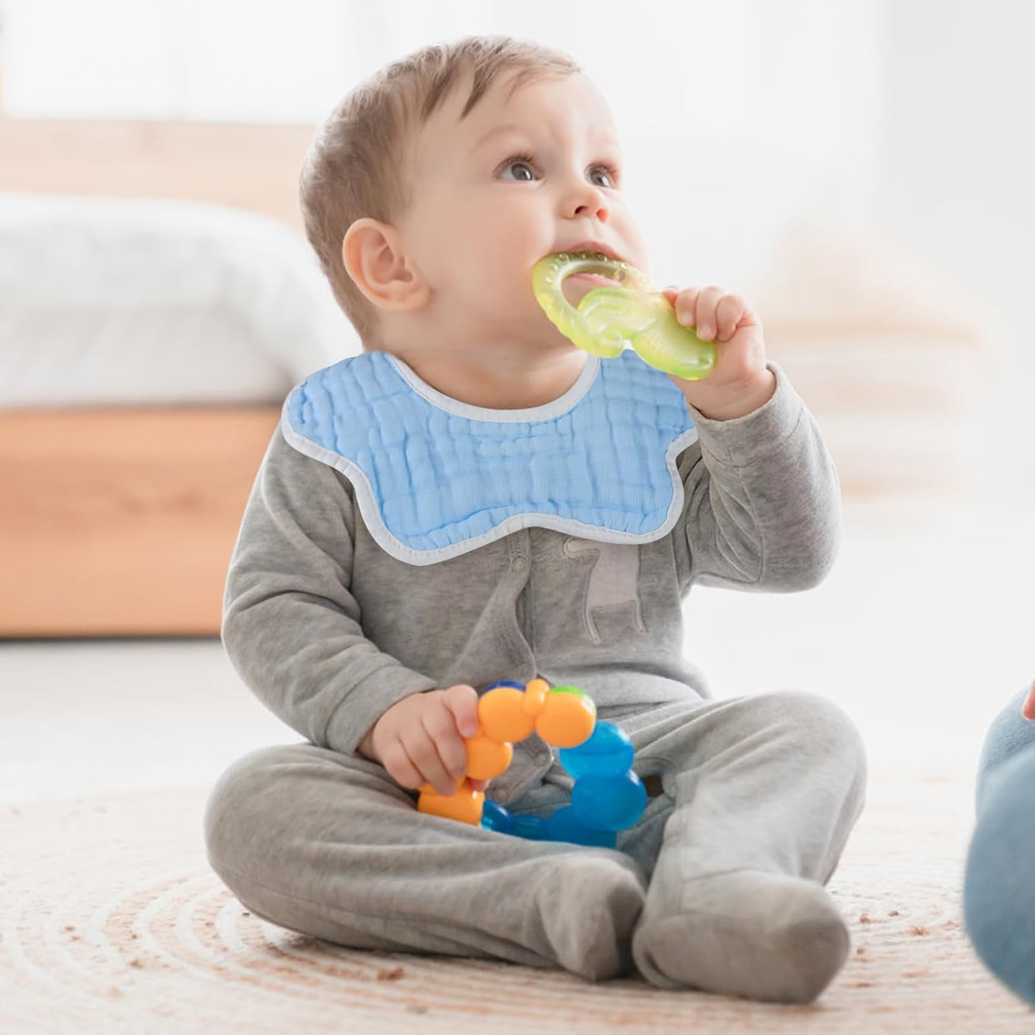 - Super Soft: Our muslin baby drooling bibs made of 100% Cotton. They are very breathable and soft, ensuring comfort for baby's delicate skin.