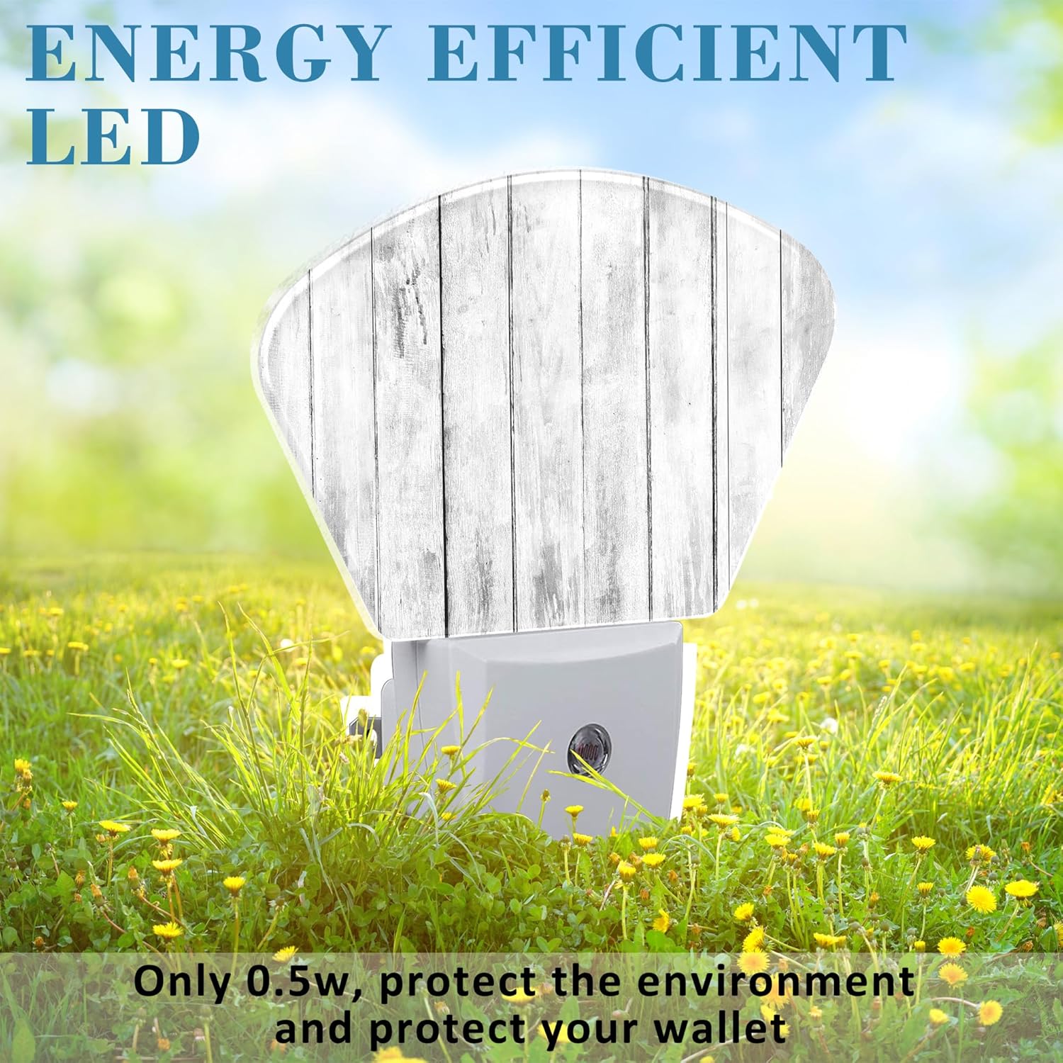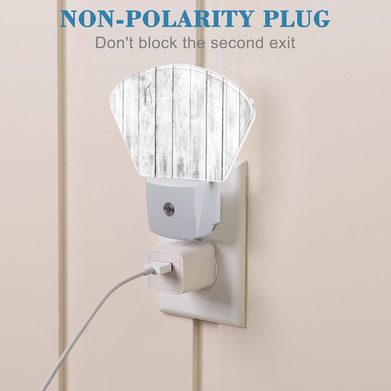 White Wooden Texture Night Light, Old Wood Grain Nightlight Plug into Wall with Dusk to Dawn Sensor for Kid Girls Boys Women Men Bedroom, Hallway, Kitchen, Bathroom, Stairs Decor