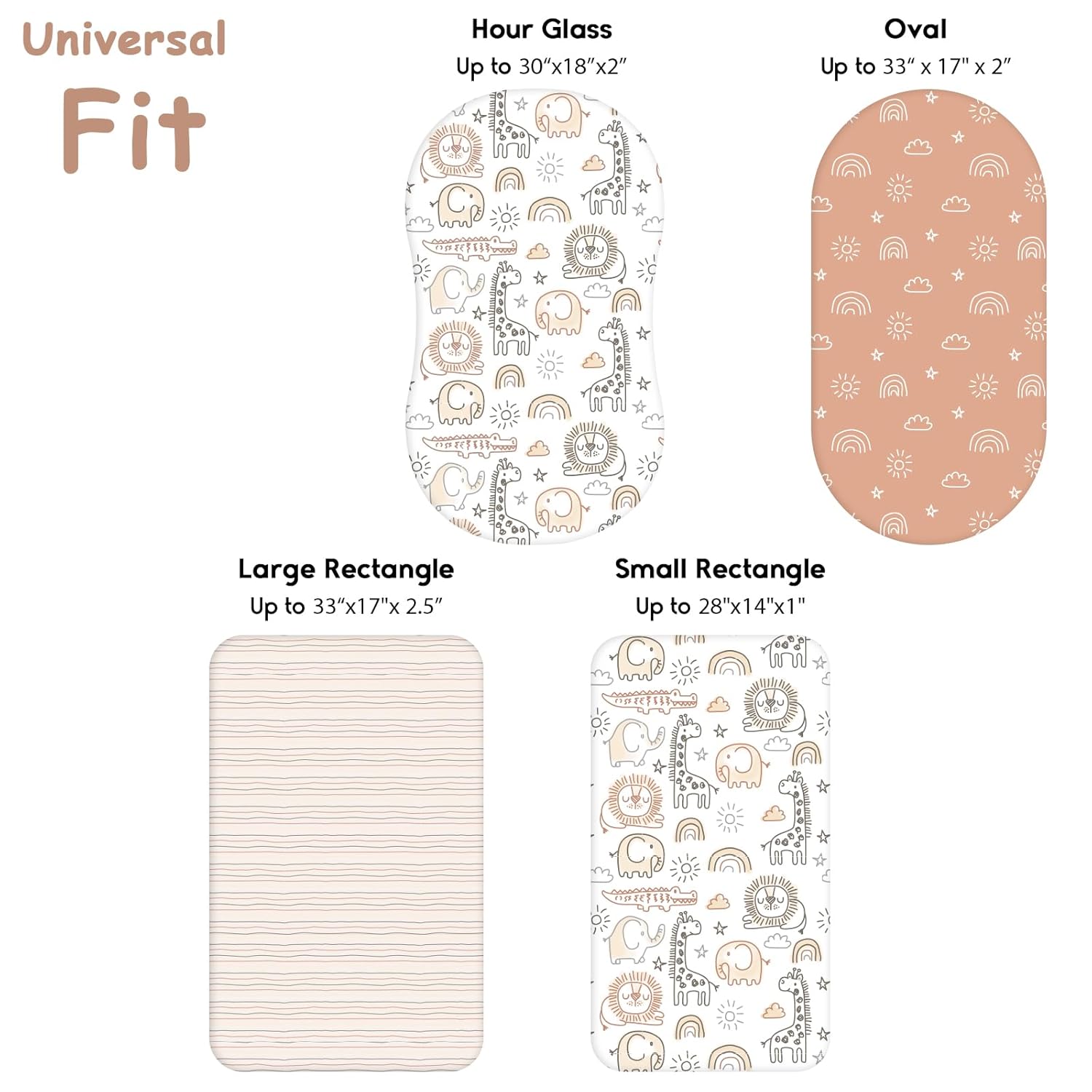 - Perfect Size: Measured 32”X 16'', universal bassinet sheets perfectly are suitable for popular brand mattresses in various shapes, such as standard oval, round, rectangular, and hourglass. Bassinet sheets with 5-inch deep pocket provides full protection for your mattress and a comfortable sleeping environment for baby.