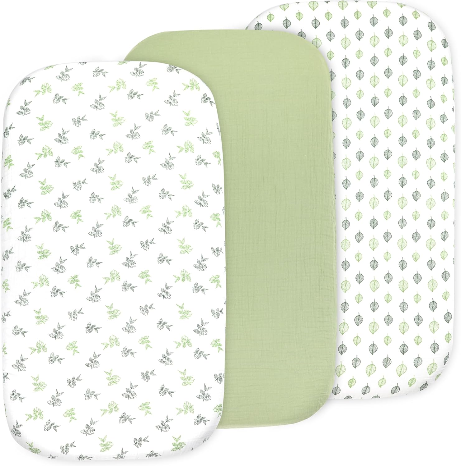 3 Pack Organic Muslin Bedside Bassinet Sheets Compatible with Mika Micky, Baby Delight, Dream On Me, AMKE and Other Bassinet Pads Size Between 17-21 in Width, 29-33 in Length, and 1.5-4 in Thick