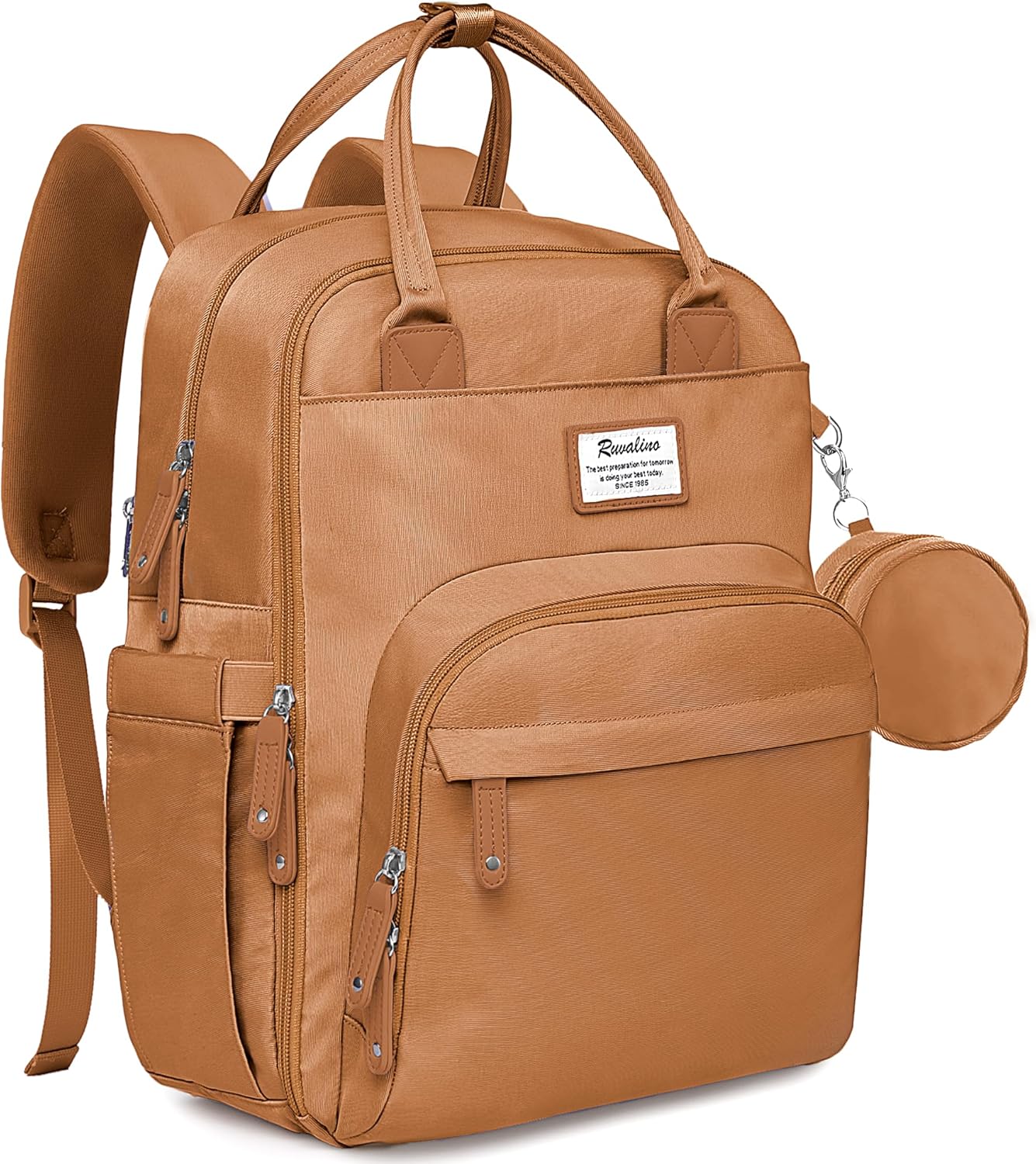 RUVALINO Diaper Bag Backpack-Multifunction Baby Travel Bag with Changing pad, Insulated Bottle Holders & Pacifier Case, Large Capacity, Waterproof, Dark Brown