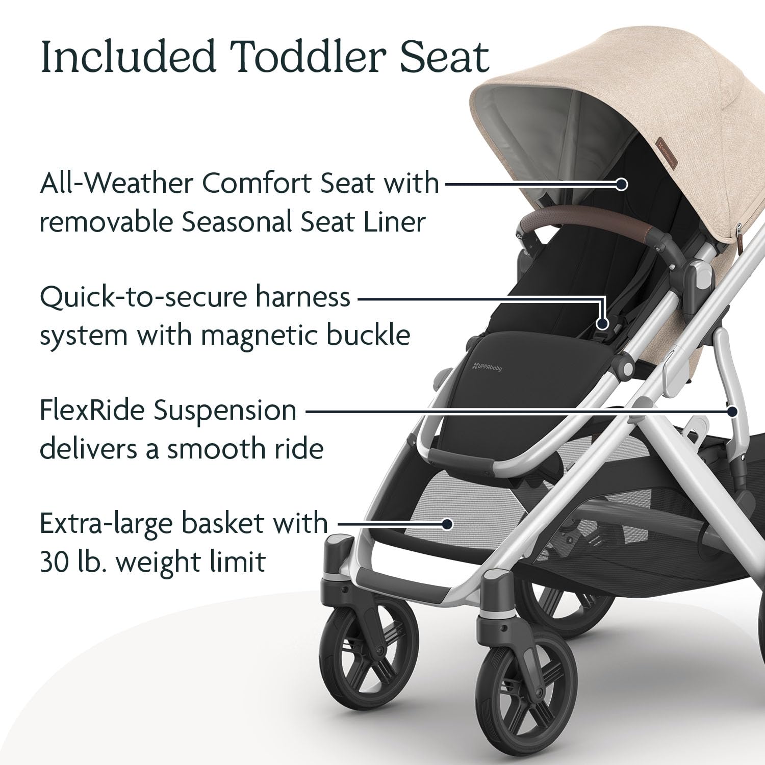 - INCLUDED TODDLER SEAT: The one-handed, multi-position, parent-facing and forward-facing full size, toddler seat grows with child up to 50 lbs.