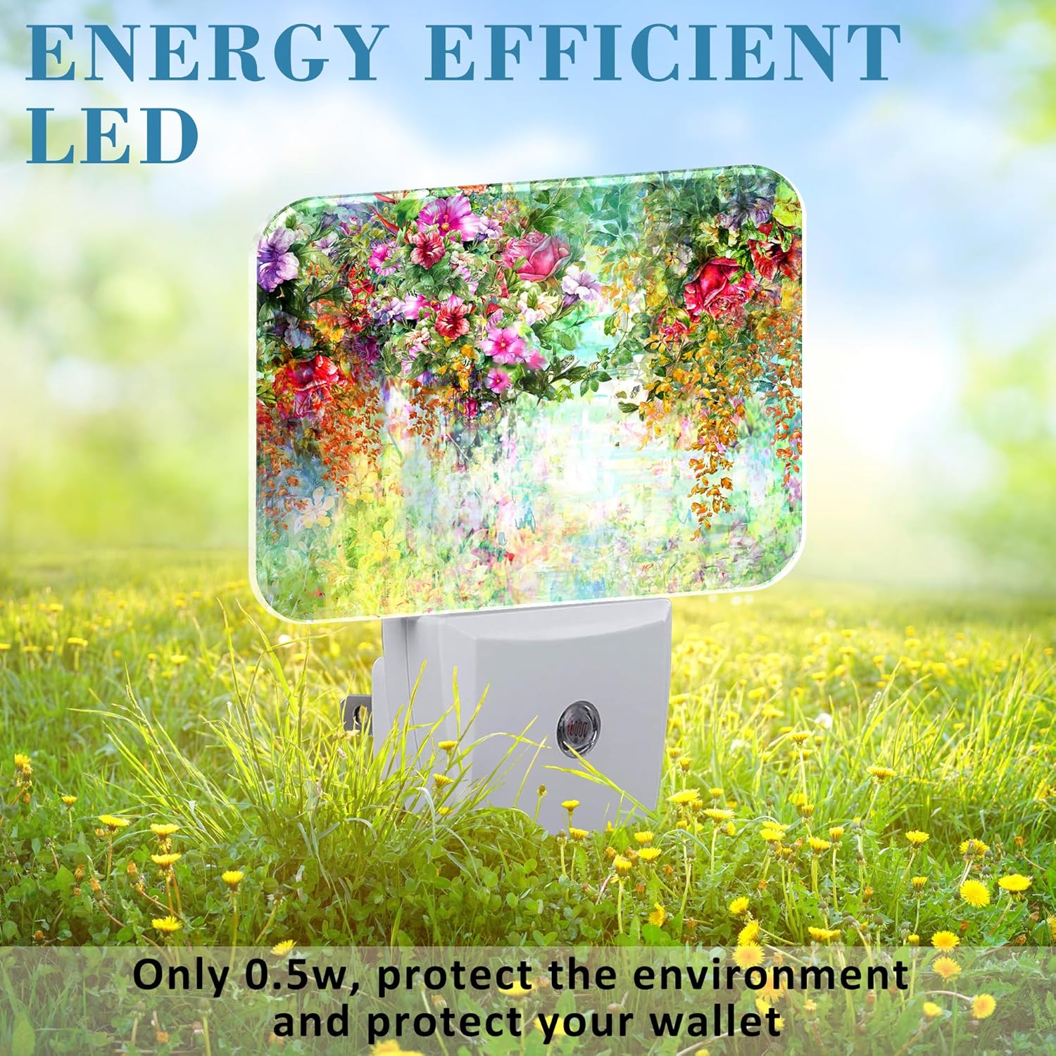 - [Energy saving]: Made with high-quality plastic, this Abstract Watercolor Flowers nightlight has a long lifespan of over 20000 working hours without bulb replacement, and it consumes less than 50 cents annually for power consumption. Its well-designed mini outlook is space-saving and doesn't block the bottom outlet for other devices.