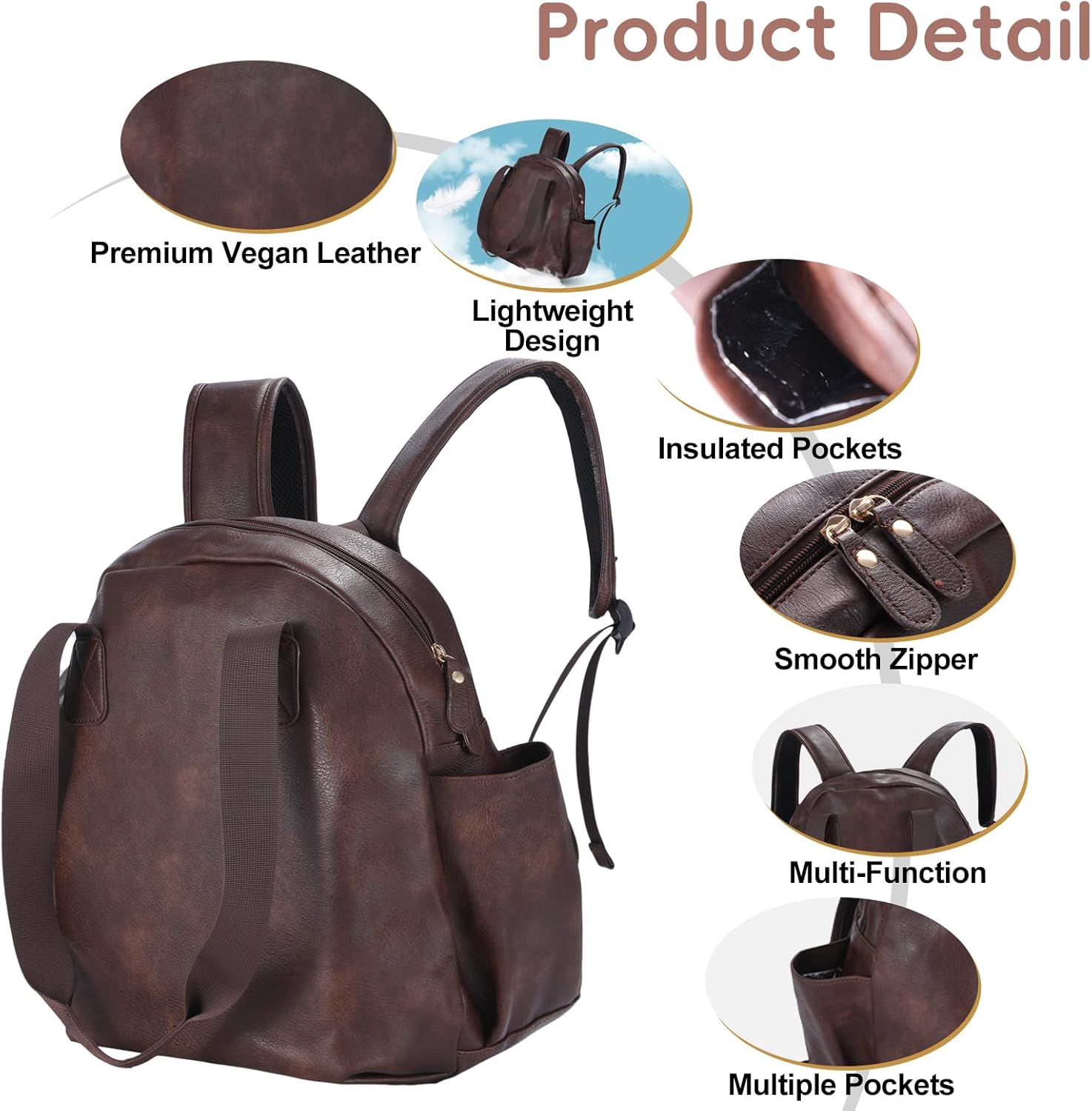 - 【Fashionable Design, High Quality Material】 The new diaper bag adopts the latest design elements, fashionable and elegant, the material is made of high quality vegan leather, soft and comfortable. This diaper backpack is the most ideal choice for your travelling.