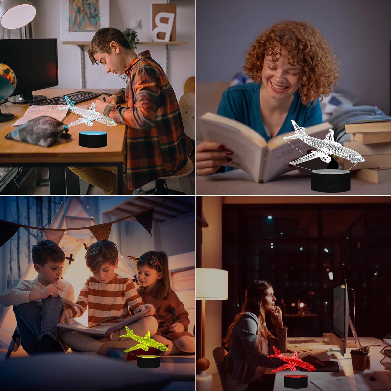 Airplane Night Light, 3D LED Illusion Night Lamp for Boys - Aircraft Themed Bedroom Lamps, Optical Illusion Lamp with Remote Control, Perfect for Kids' Room Décor, Cool Gifts for Airplane Lovers