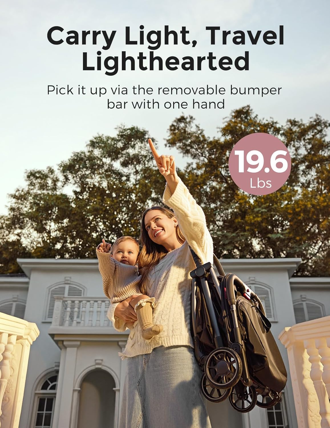 - Carry Light, Move With Ease: Weighing 19.6 lbs, this lightweight stroller offers versatile carrying options—carry it one-handed by the bumper bar or use the included travel bag for shoulder carrying; navigate stairs or public transport with ease.