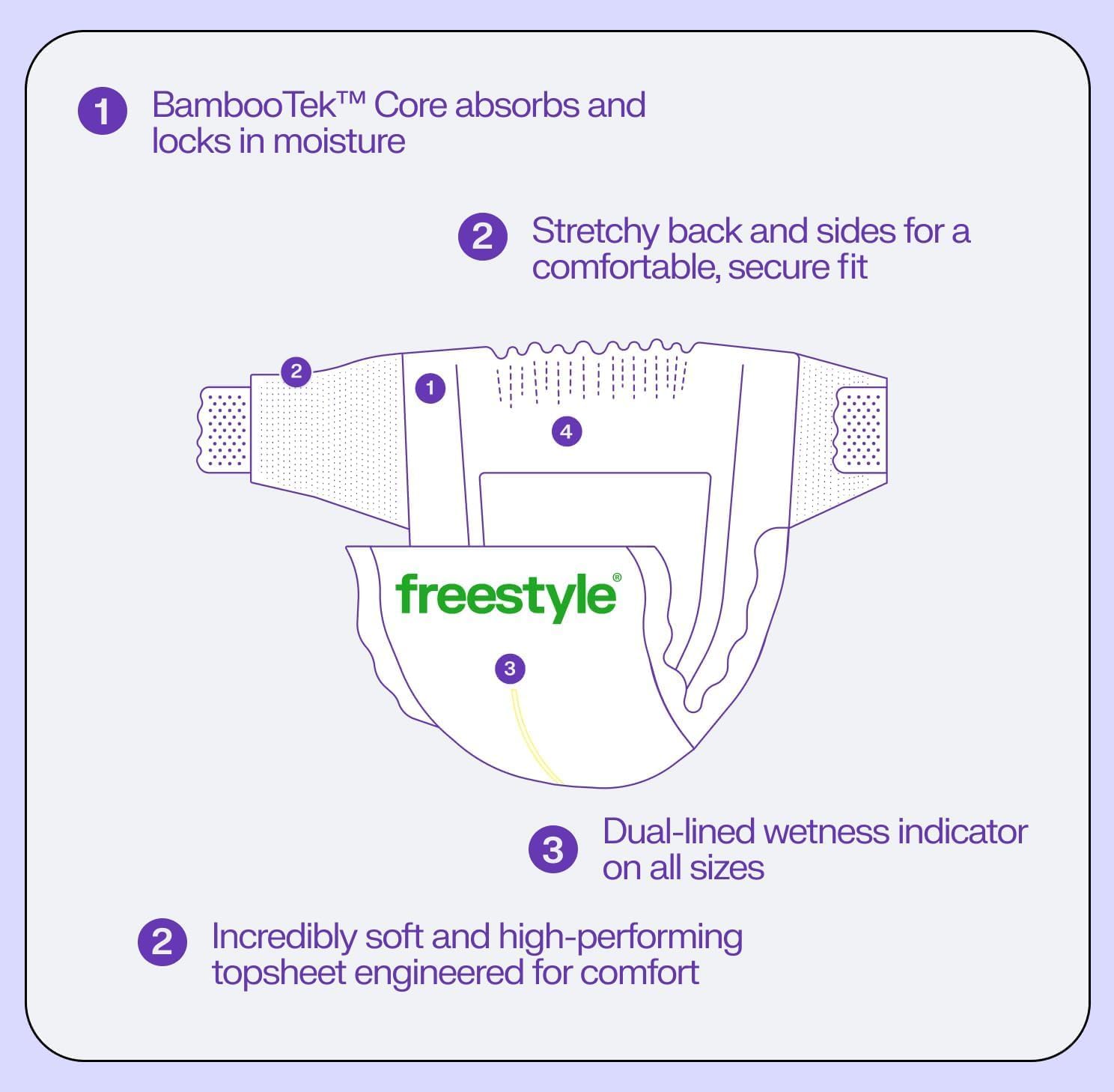 Freestyle BambooTek Diapers – (Size 3) Hyper Absorbent & Non-Toxic – Disposable Diapers for Sensitive Skin – Ultra Soft Diaper's (16-28 lbs) – 56 Count