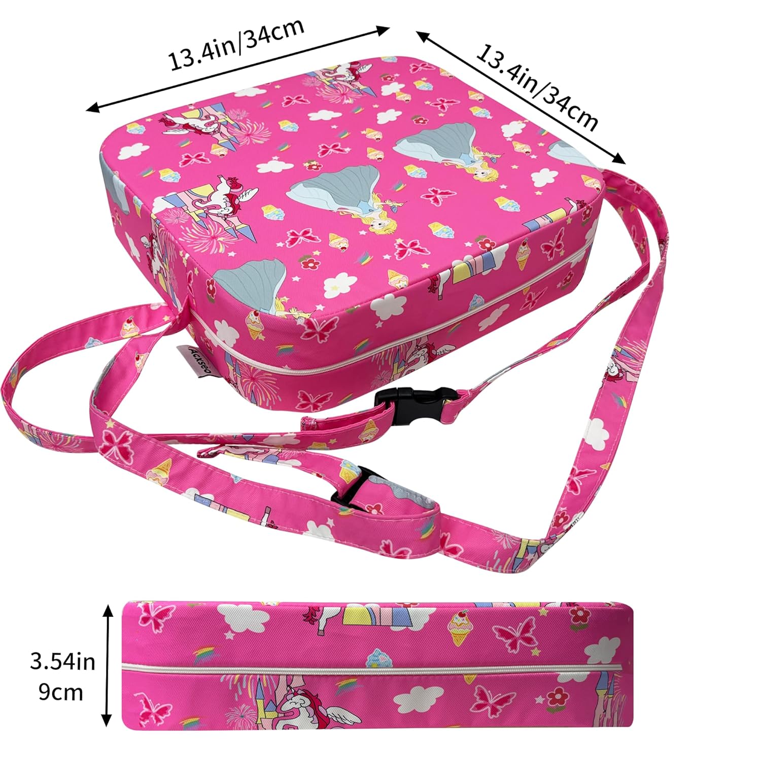 Toddler Booster Seat for Kitchen Chair, 3.5" Oxford Foam Cushion, Non-Slip Base, Adjustable Straps, Portable Dining Booster for Self-Feeding Toddlers at Home or on The Go (Pink Castle)