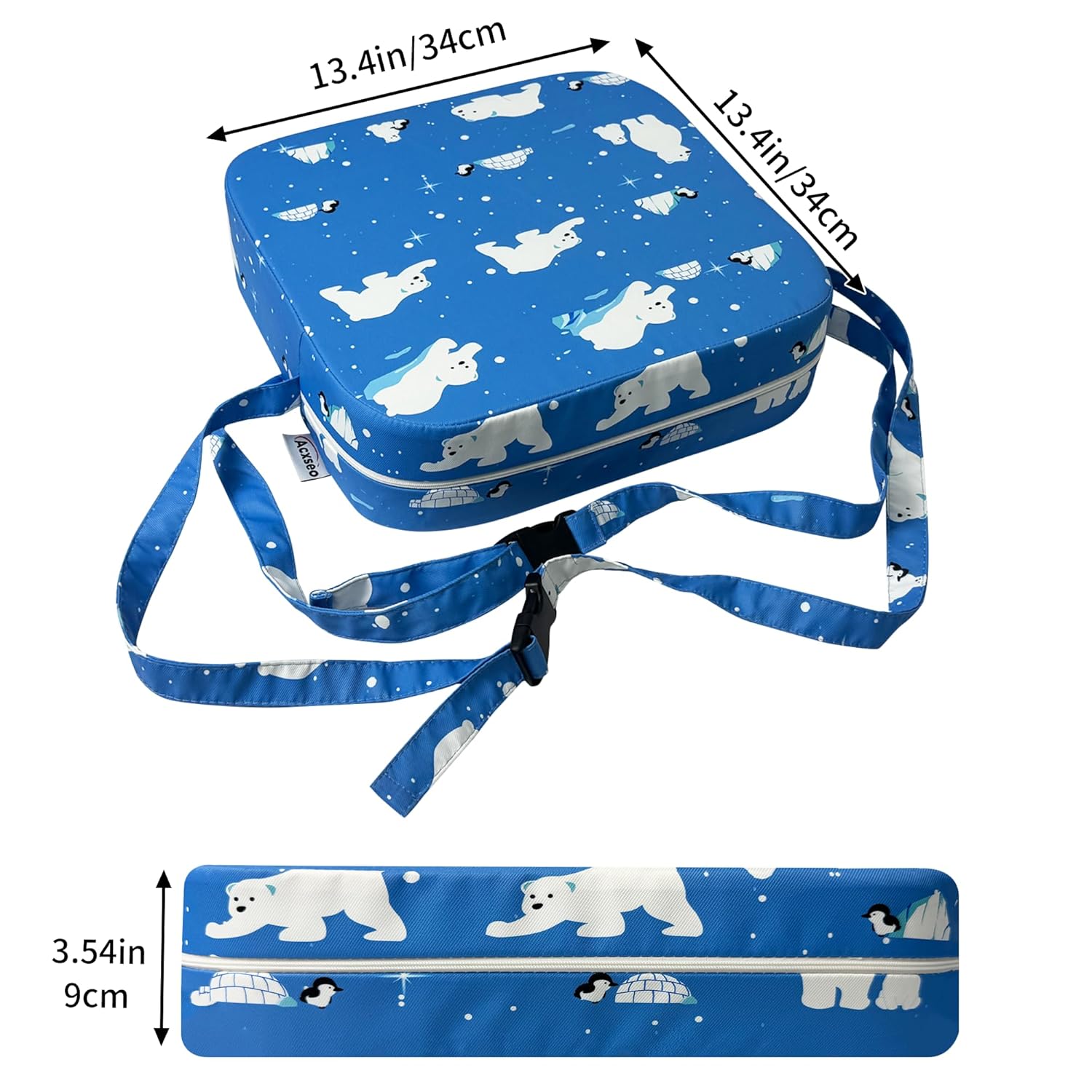 Toddler Booster Seat for Kitchen Chair, 3.5" Oxford Foam Cushion, Non-Slip Base, Adjustable Straps, Portable Dining Booster for Self-Feeding Toddlers at Home or on The Go (Polar Bear)