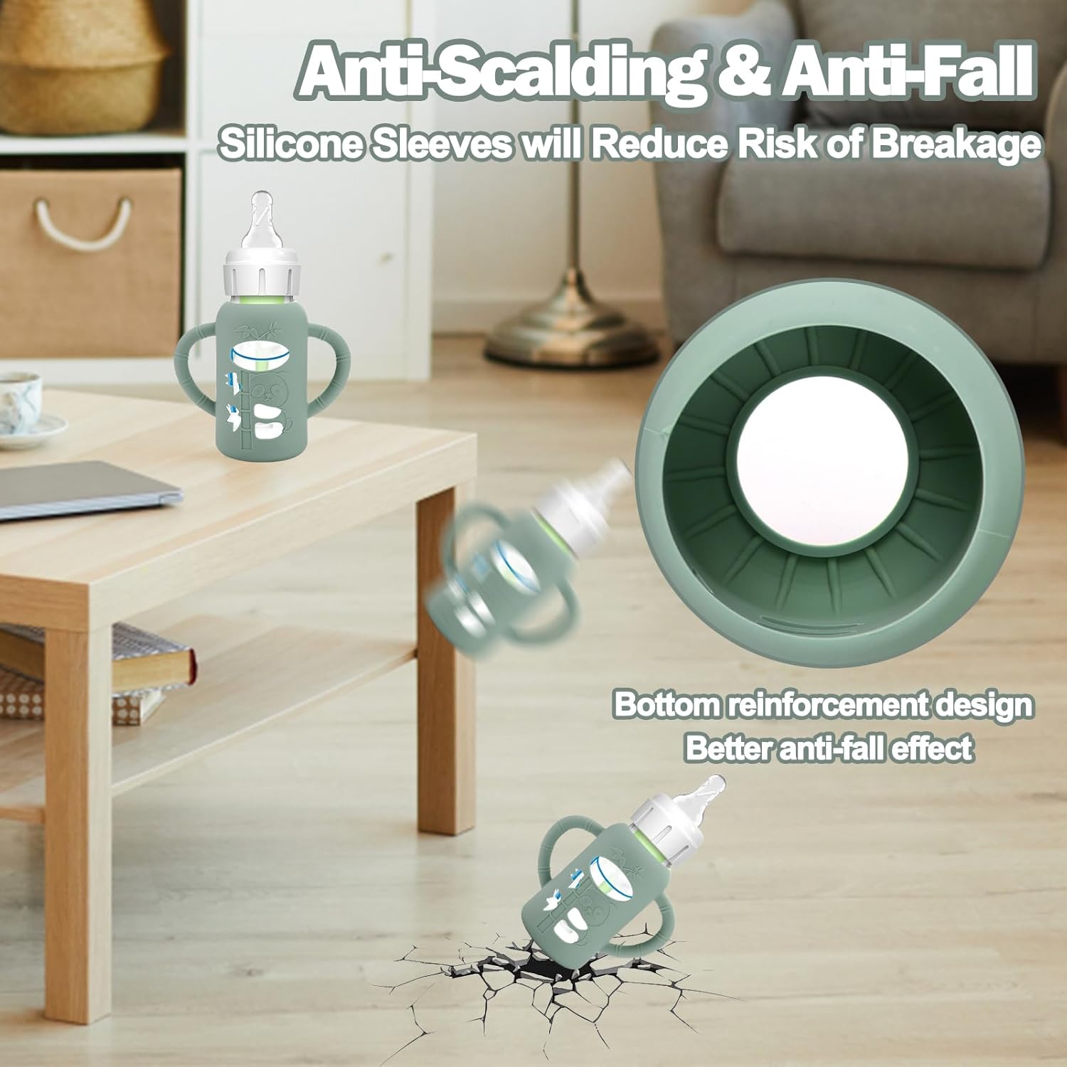- Food Grade Silicone - Silicone Baby Bottle Sleeves is made of food grade silicone,no chemical additives and BPA free, which is safe to use. The baby bottle sleeves use of anti-stick silicone material and unique shape design, will not stick to the dust,hairiness,etc, which make it safer and more secure for you to use