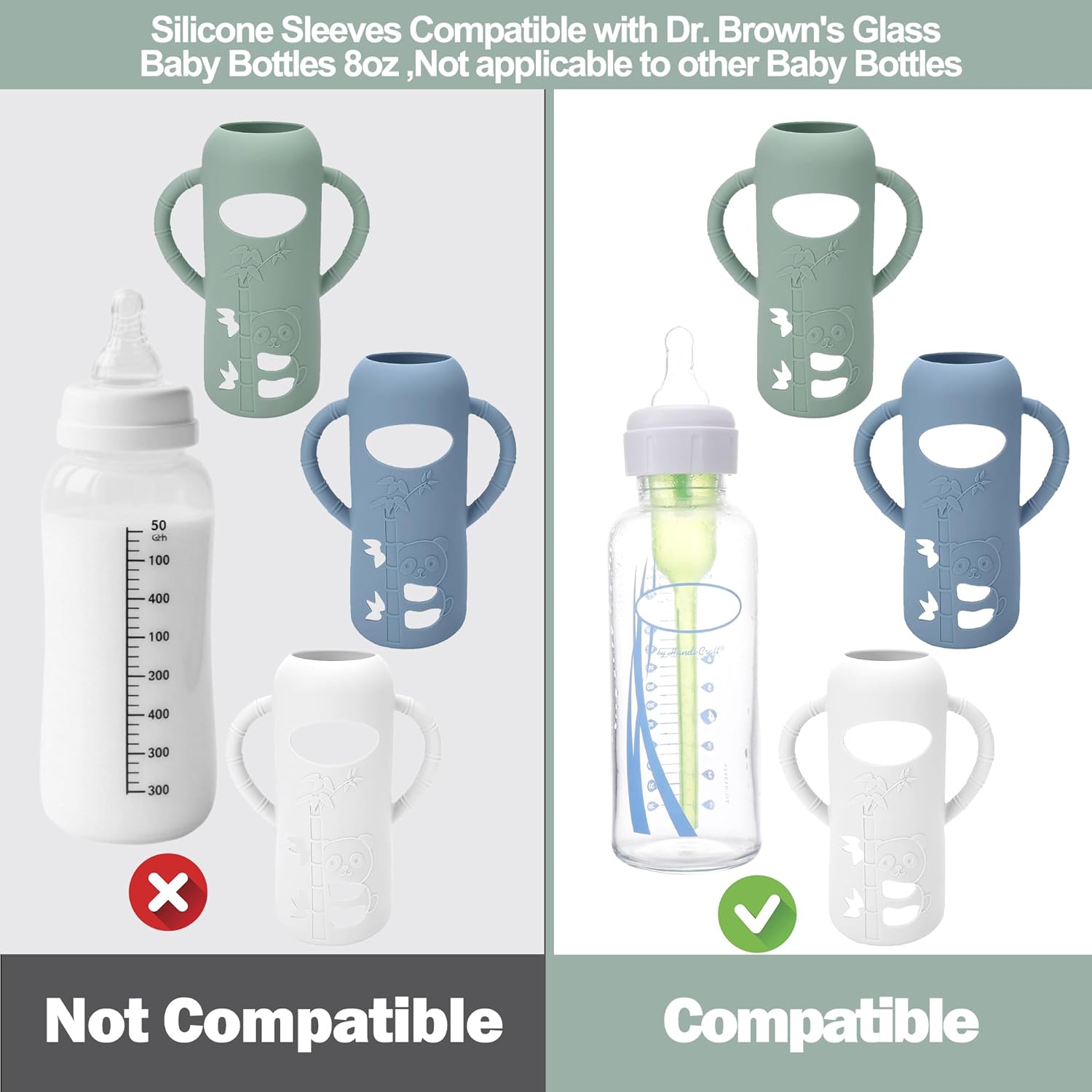 - The Tips: The baby bottle silicone sleeve is compatible with Dr. Brown's Glass baby Bottles 8 oz/240 ml, (Other series products cannot be adapted)