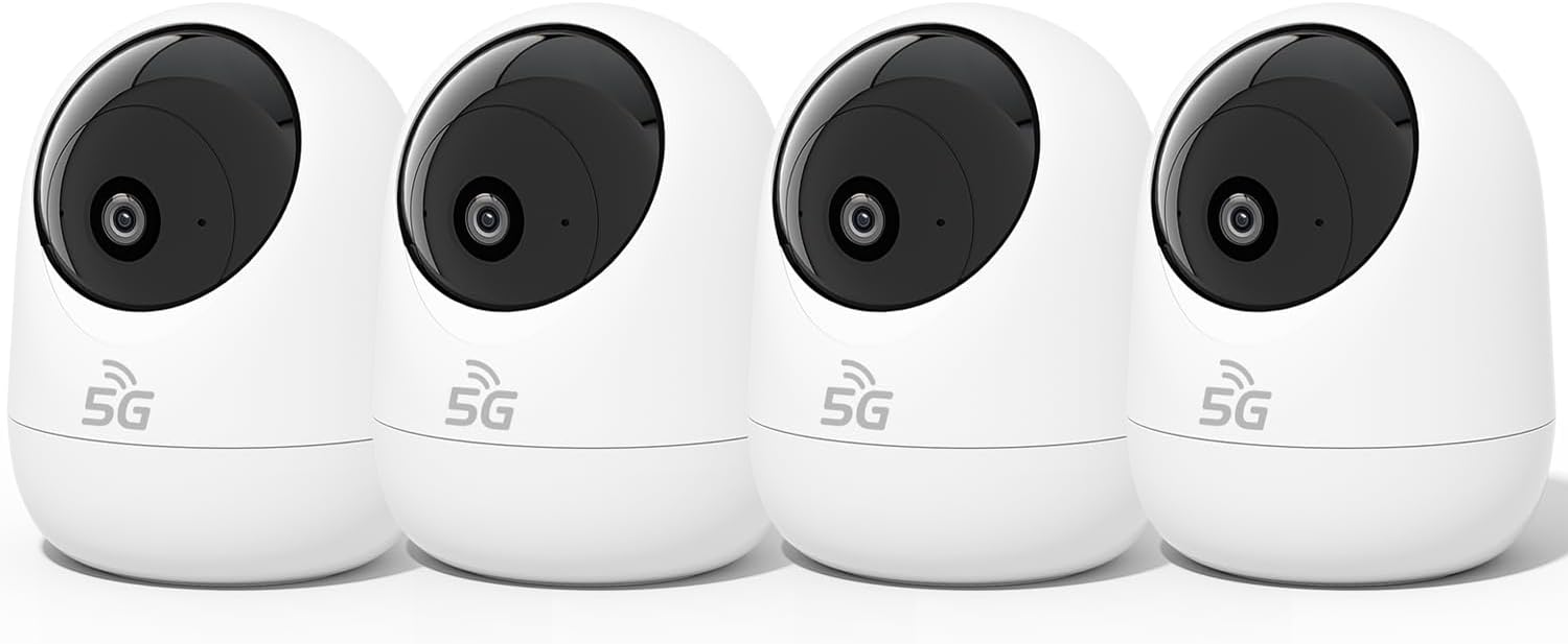 Rraycom 4Pack 2K Security Camera Indoor 5G/2.4 GHz Wi-Fi, Baby Monitor Pet/Dog Camera 360-Degree for Home Security, Smart Motion Tracking, 24/7 Live View, Night Vision, Compatible with Alexa