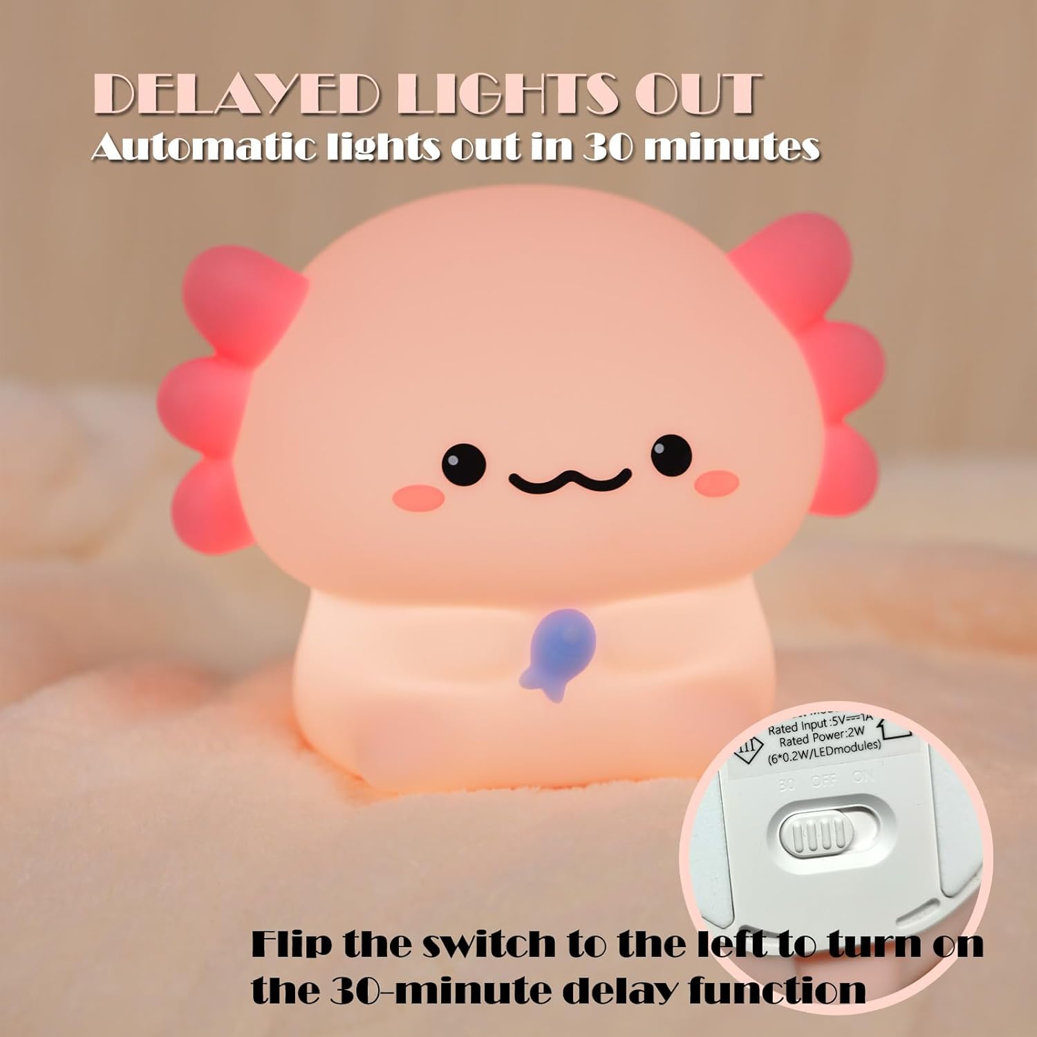 Axolotl Cute Cartoon Nursery Night Lights, Animal Design Safe Silicone Soft LED Nursery Lamp for Toddler Room Decoration
