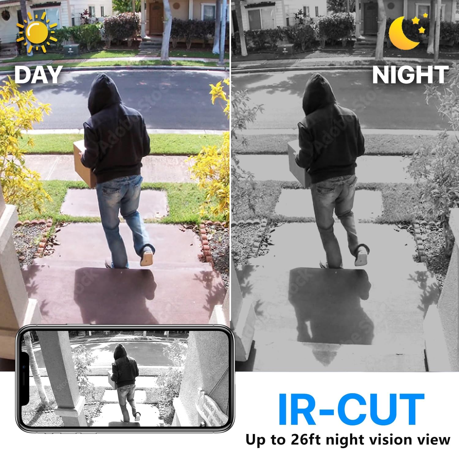 - ✔️【Upgrade night vision】— XDWIFI Pro biggest feature is night vision, using two 940nm infrared lights, night vision distance up to 26ft, so you can see very clearly in a low light environment, or even in total darkness, the infrared light is not glowing. Therefore, suitable for installation indoors, outdoors, companies, parking lots and other places to protect your safety.