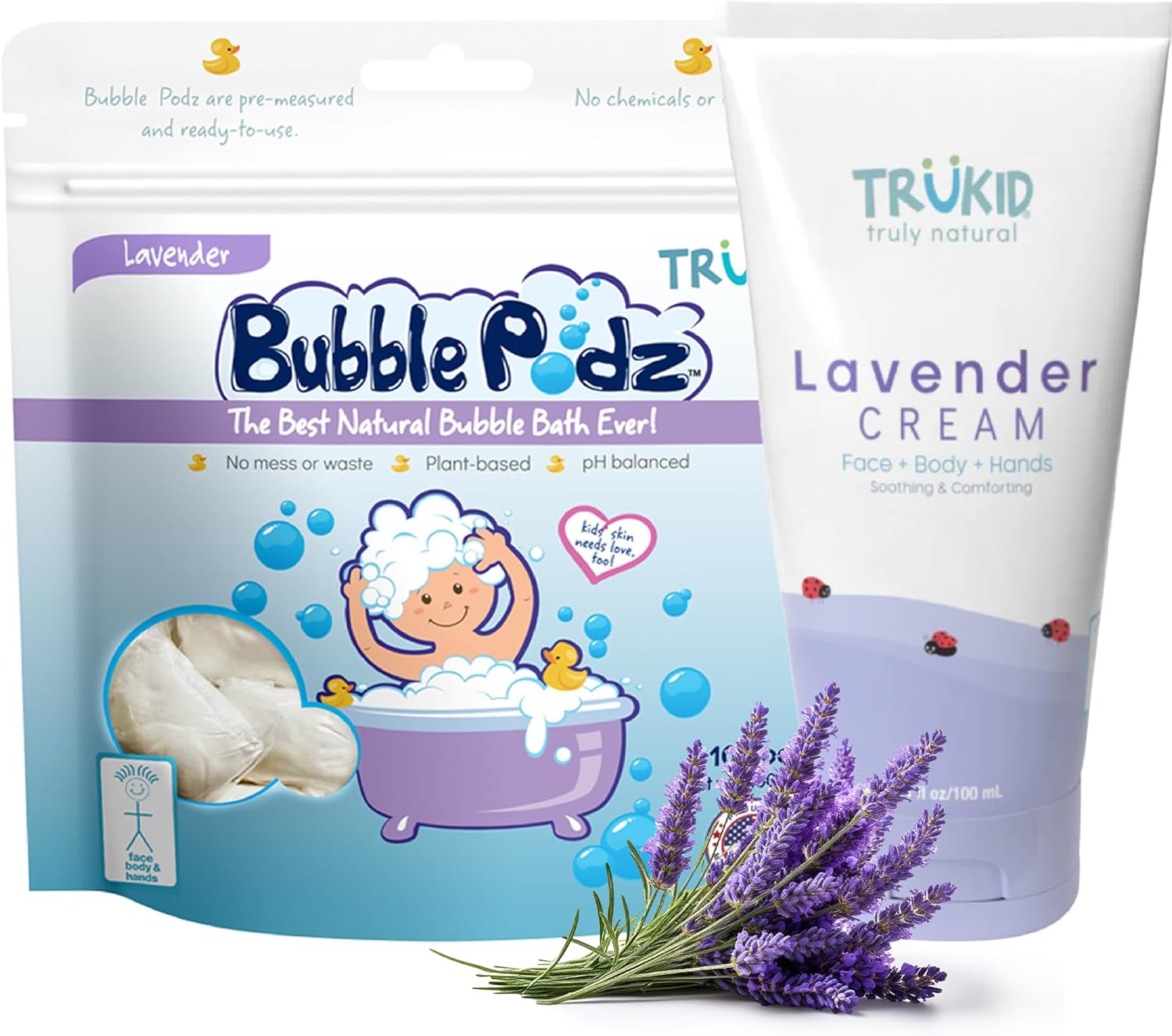 TruKid Lavender Bubble Podz with Baby Skin Cream – Calming Bath and Moisture Bundle for Kids and Toddlers